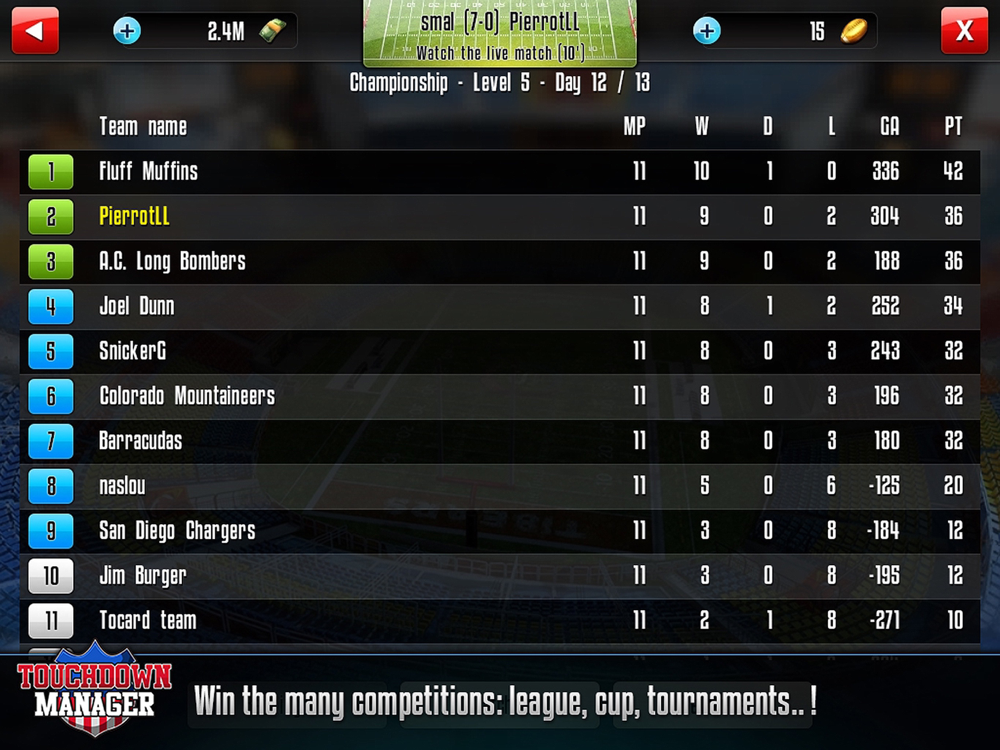 Please note that Touchdown Manager is completely free to play but some in-game items will require payment.