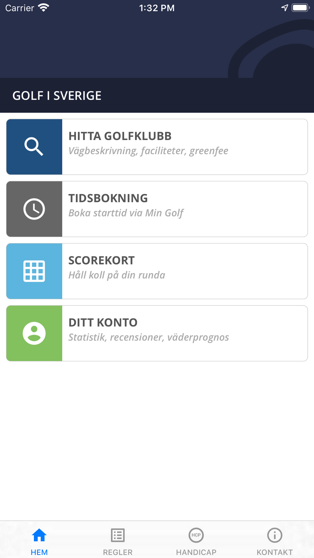 Golf i Sverige är din digitala golfguide som erbjuder scorekort med interaktiva kartor och GPS-avstånd, tidsbokning, golfregler, väderprognoser, m.m..