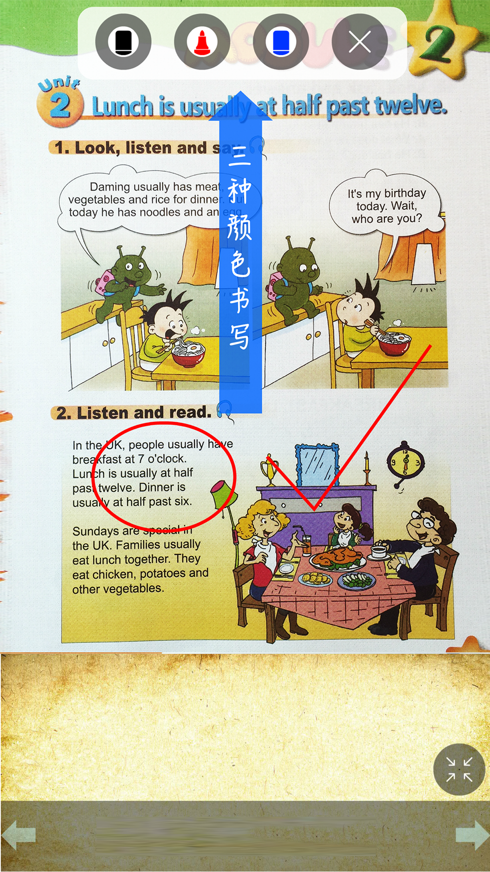 ● 电子书写笔,可以涂涂画画,小朋友可以直接在页面写写单词加强练习