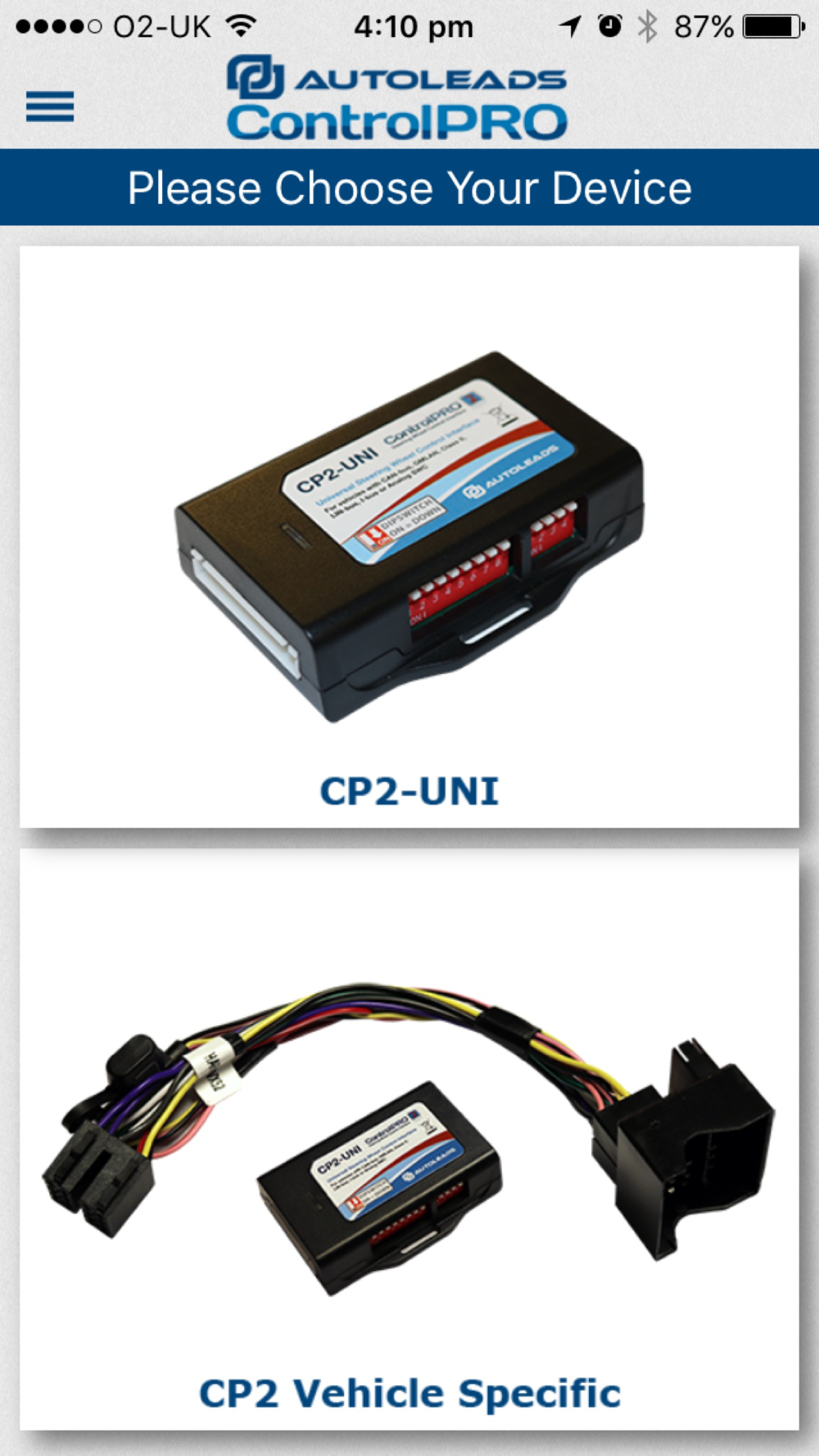 ControlPRO app is designed to be used with the ControlPRO Steering Wheel interfaces from Autoleads. When connected to a ControlPRO steering wheel interface, this app will provide the ability to custom configure the vehicle's original steering wheel controls, to operate the functions of the aftermarket radio. Visit www.autoleads.co.uk/controlpro for additional information.