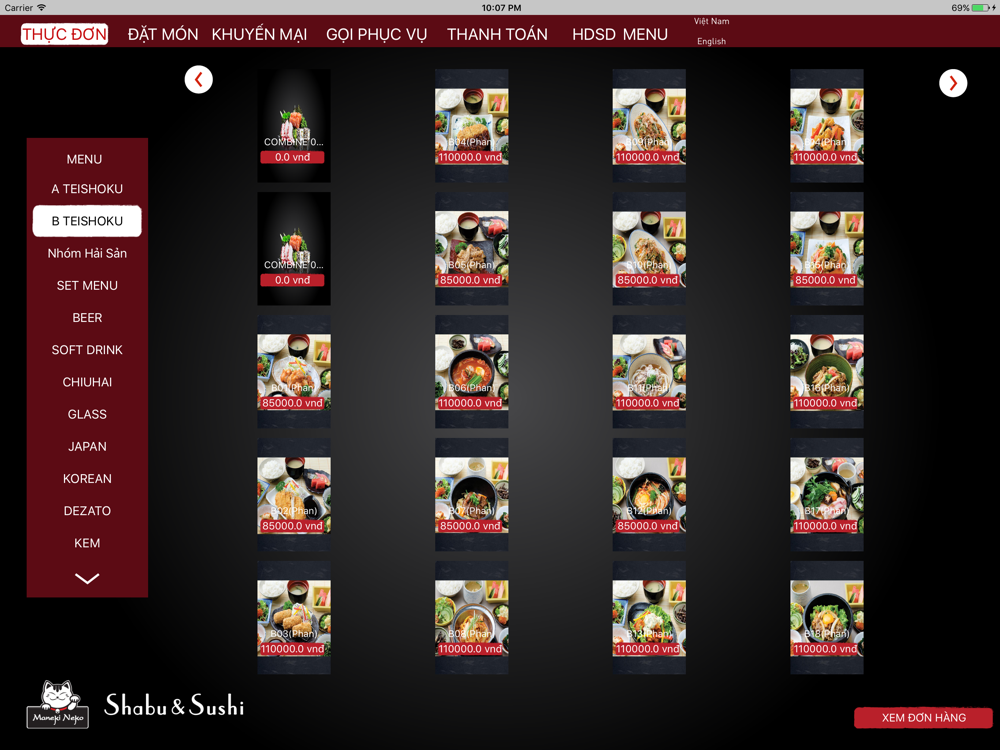 Ứng dụng ORDER menu cho khách hàng tại bàn.