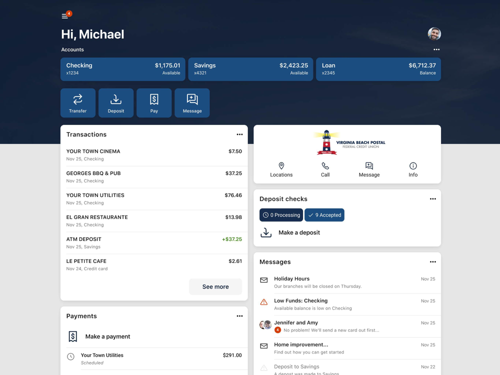 To use the Virginia Beach Postal FCU App, you must be enrolled as an Virginia Beach Postal FCU Internet Banking user. If you currently use our Internet Banking, simply download the app, launch it, and login with the same Internet Banking credentials. After you successfully login to the app, your accounts and transactions will begin updating.