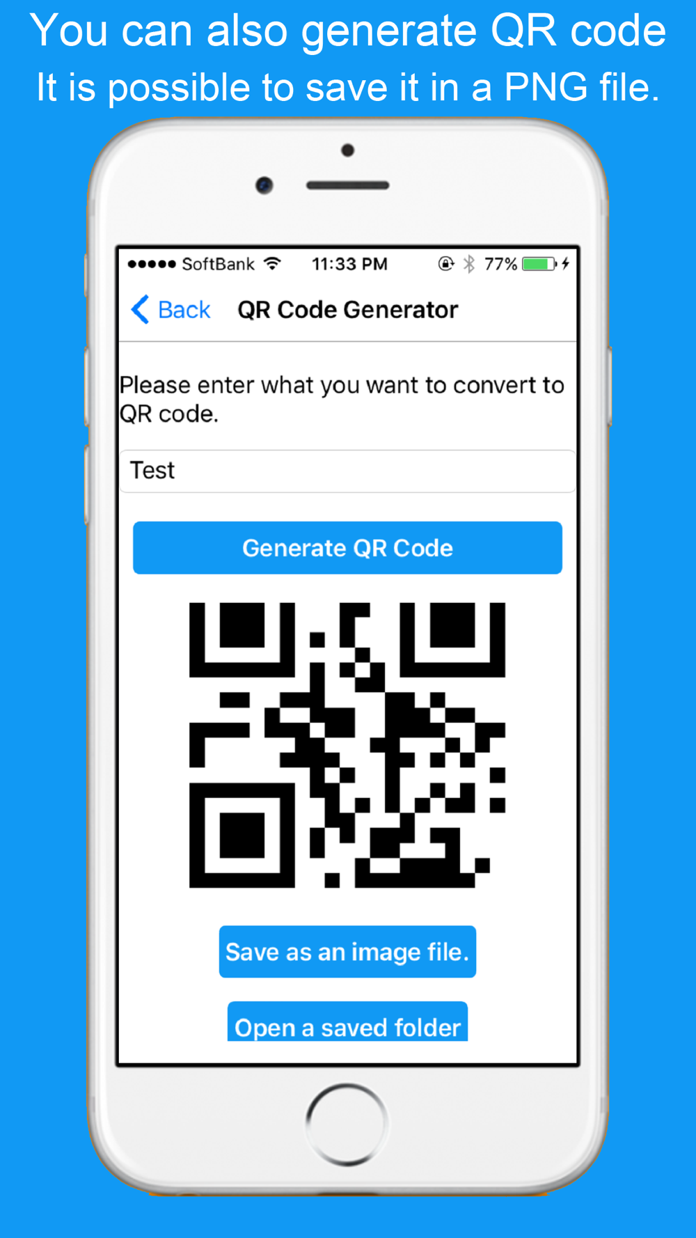 In addition, this app can scan the QR code using the camera, can copy the contents or launch the browser. this app can scan the QR code in the image file. Conversely, this app can also generate QR images.