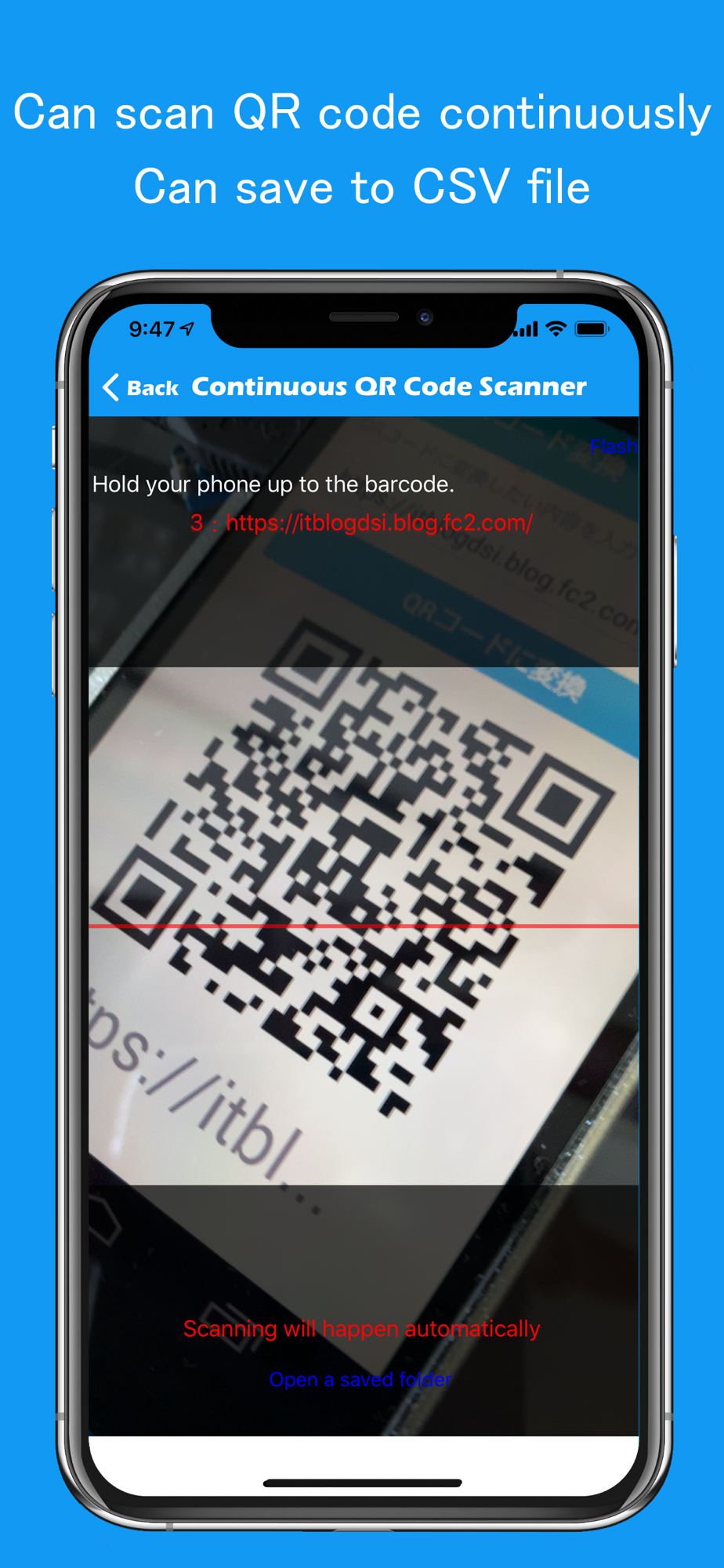 (4) Continuous QR code scanner (You can get the CSV file.)