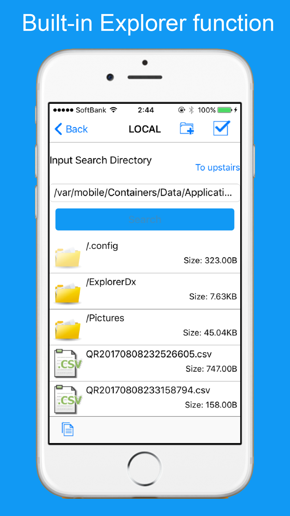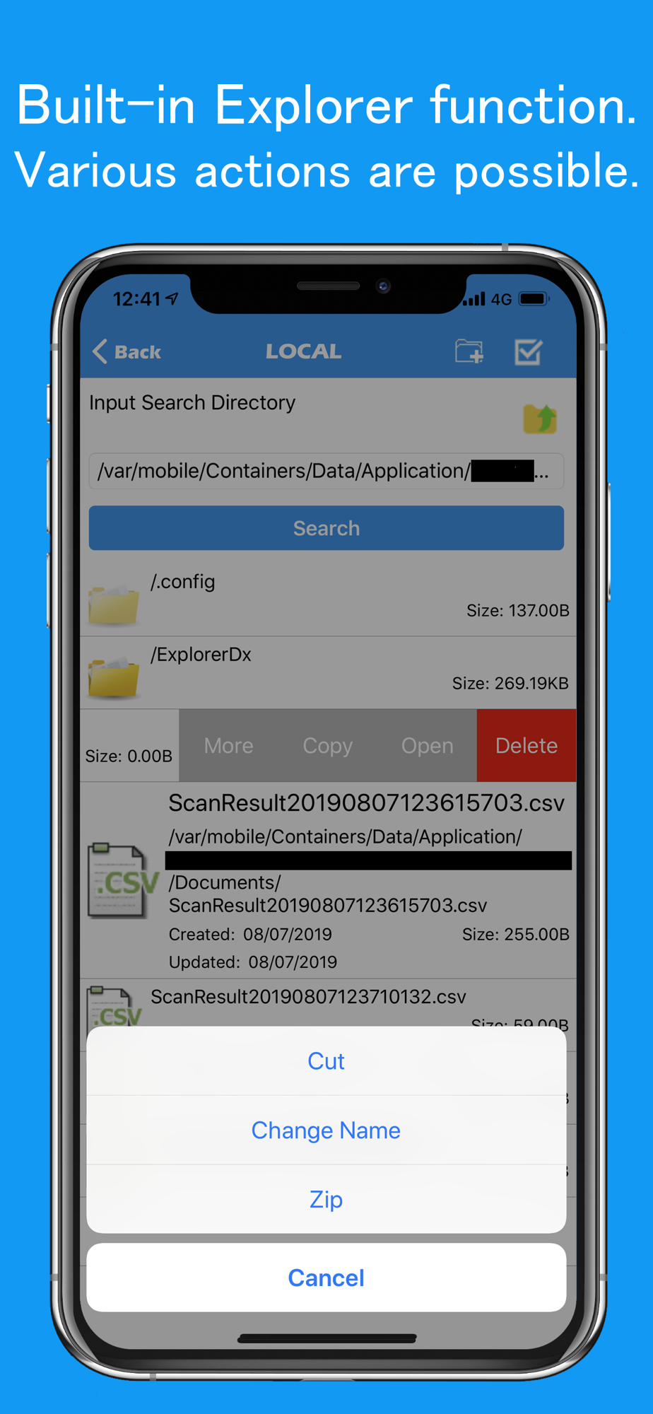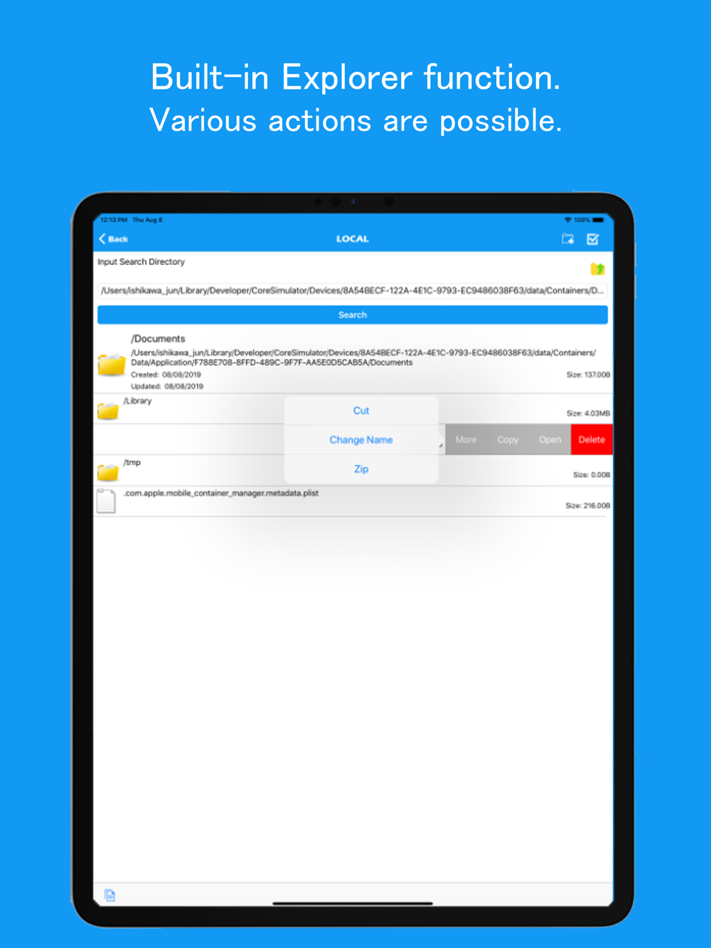 (1) Explorer (Create folder, Cut, Copy, Paste, Delete, Change name, Open file, Send a mail, zip/Unzip, etc )