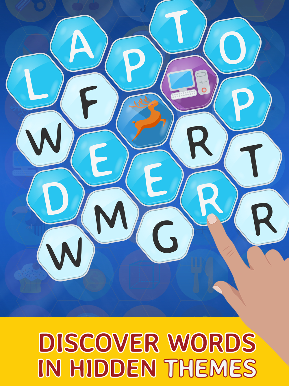 We worked really hard to make the word pictures game extremely enjoyable to play. Swipe your finger over the letters to create the words. This guess the words game is progress based, which keeps you hooked and challenged along the way. Each word you find increases your IQ and unlocks new levels.