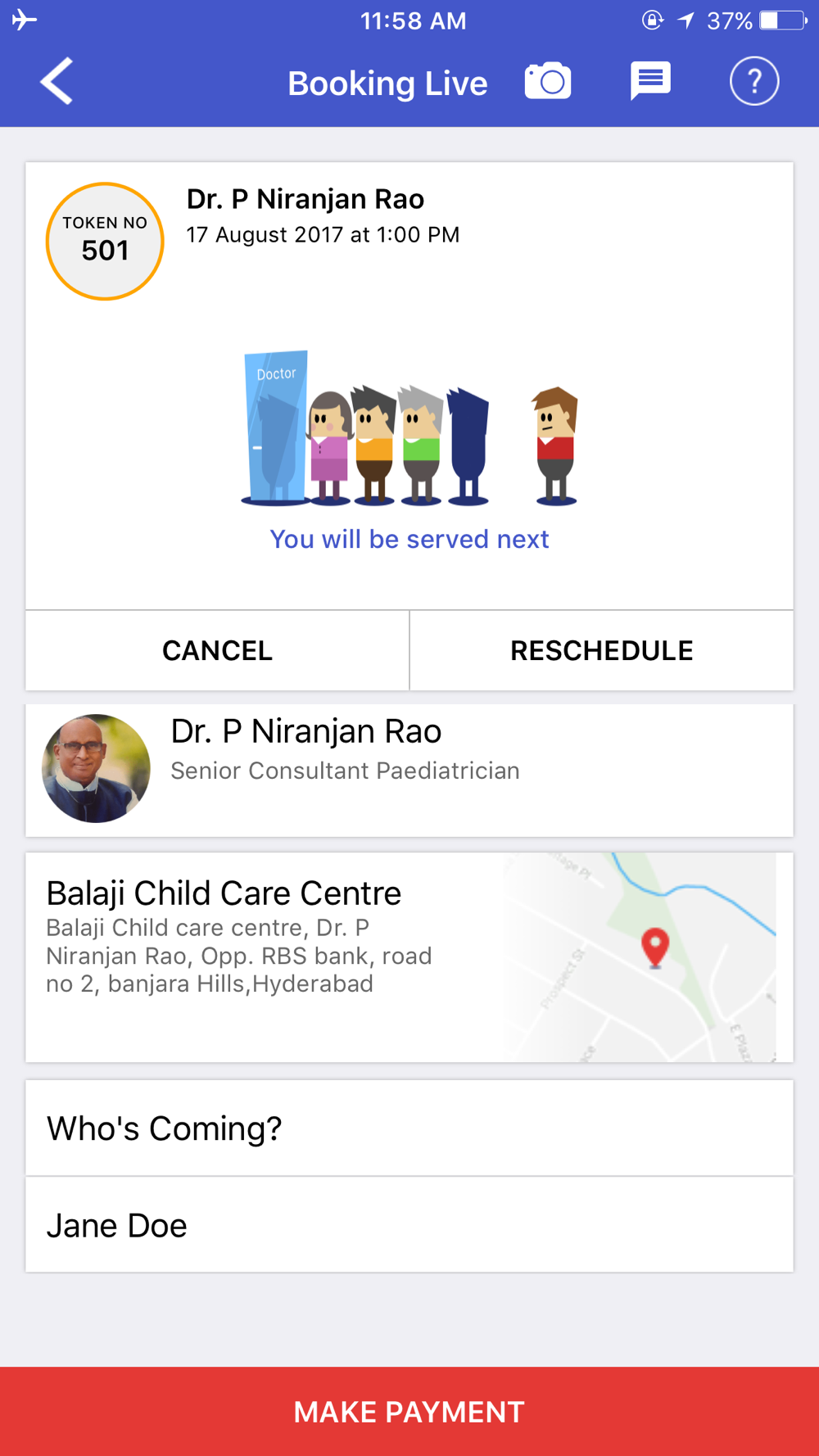 Mothers at pediatricians find it very difficult to wait for long. Apart from the uncomfortable wait, there is always the risk of infection from other infants and surroundings. Using Sminq, Mrs. Nema could join the queue from her home & keep live track of the queue progress. When she got an app notification that there are three people ahead of her in queue, she left her home and reached “Just In time” for her appointment.