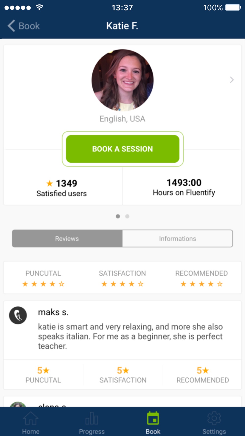 • Schedule your Speaking Sessions: you can book/reschedule and perform your sessions with your tutor thanks to the built-in video conferencing and instant messaging systems; you can also leave a review to your tutor and see the feedback they leave you after every session.