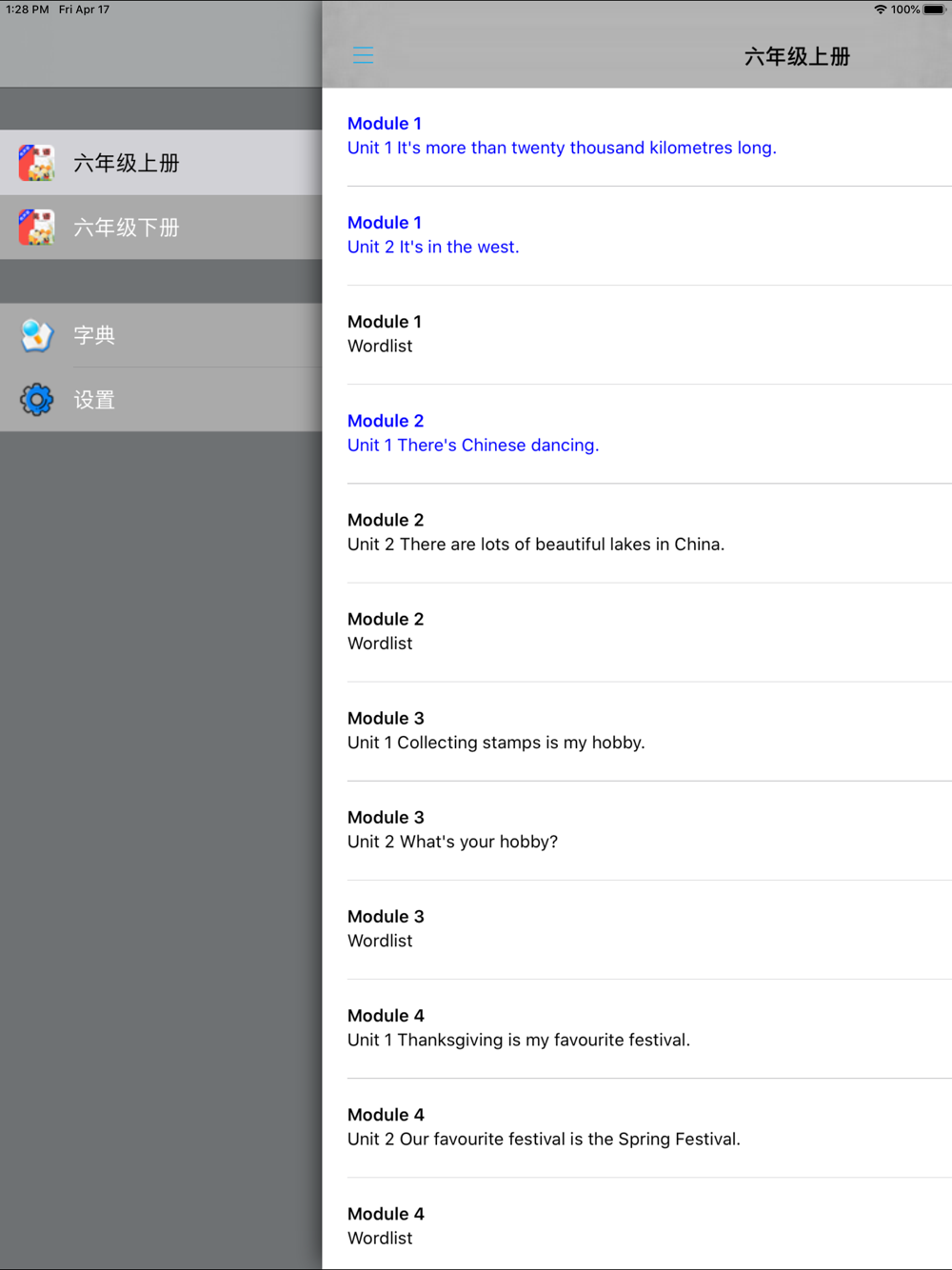 *与教材完全一致,此应用为外研社新标准小学英语六年级上册+下册全套(三年级起点)完全最新版。