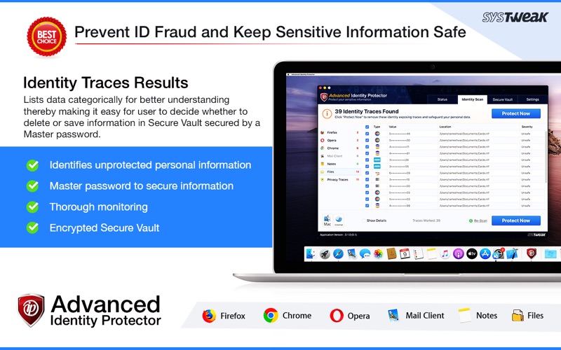If you are wondering how I can protect my identity on Mac? Advanced Identity Protector by Systweak Software could just be the answer you are looking for. This identity protection software helps you scan identity traces which get stored in the form of web browsing history, emails and notes. Once identified, you can wipe out such identity traces from your System.