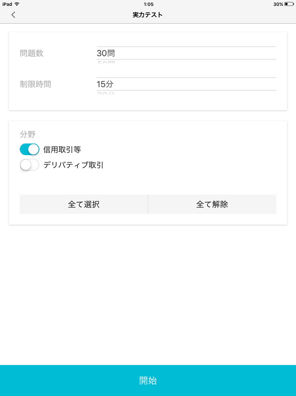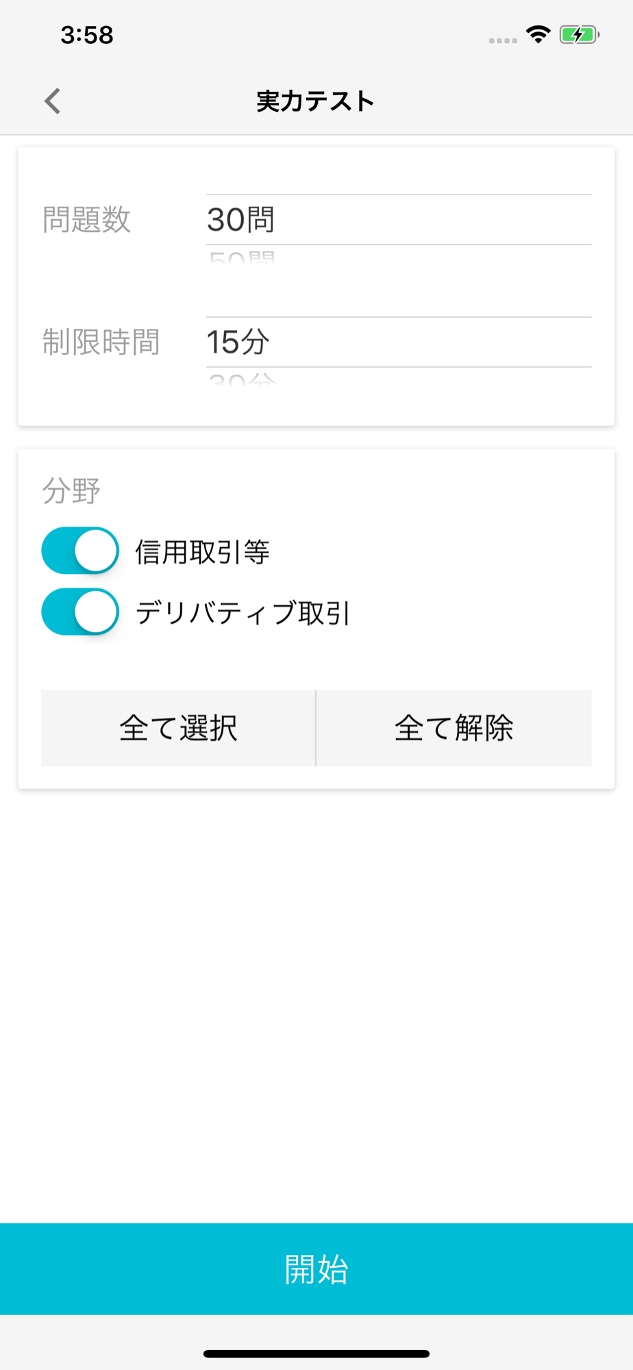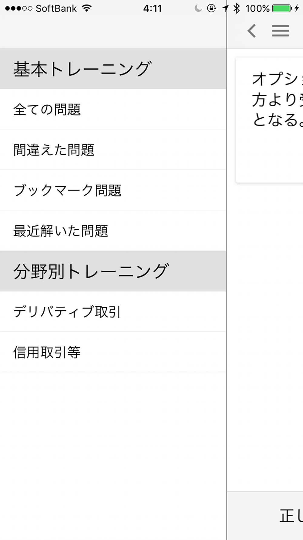 ・トレーニング(全問ランダム、間違えた問題、分野別等)