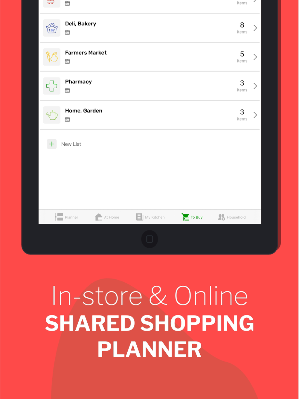 Shop for groceries with confidence, knowing at all times what you have at home. Your category-sorted "To Buy" list is built in seconds with powerful product creation assistance and automatic item handling. Share the list with anyone or select products to be remembered as a favorite. A daily reminder will keep you from missing a trip to the store.