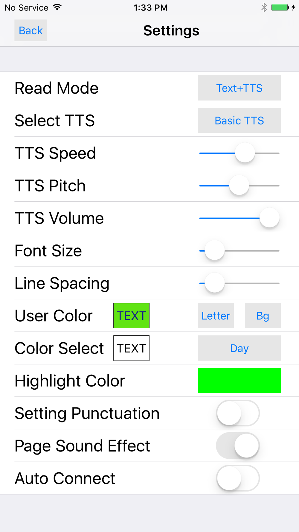 - You can set font sizes, font color, background color, line spacing and brightness to suit your visual status.