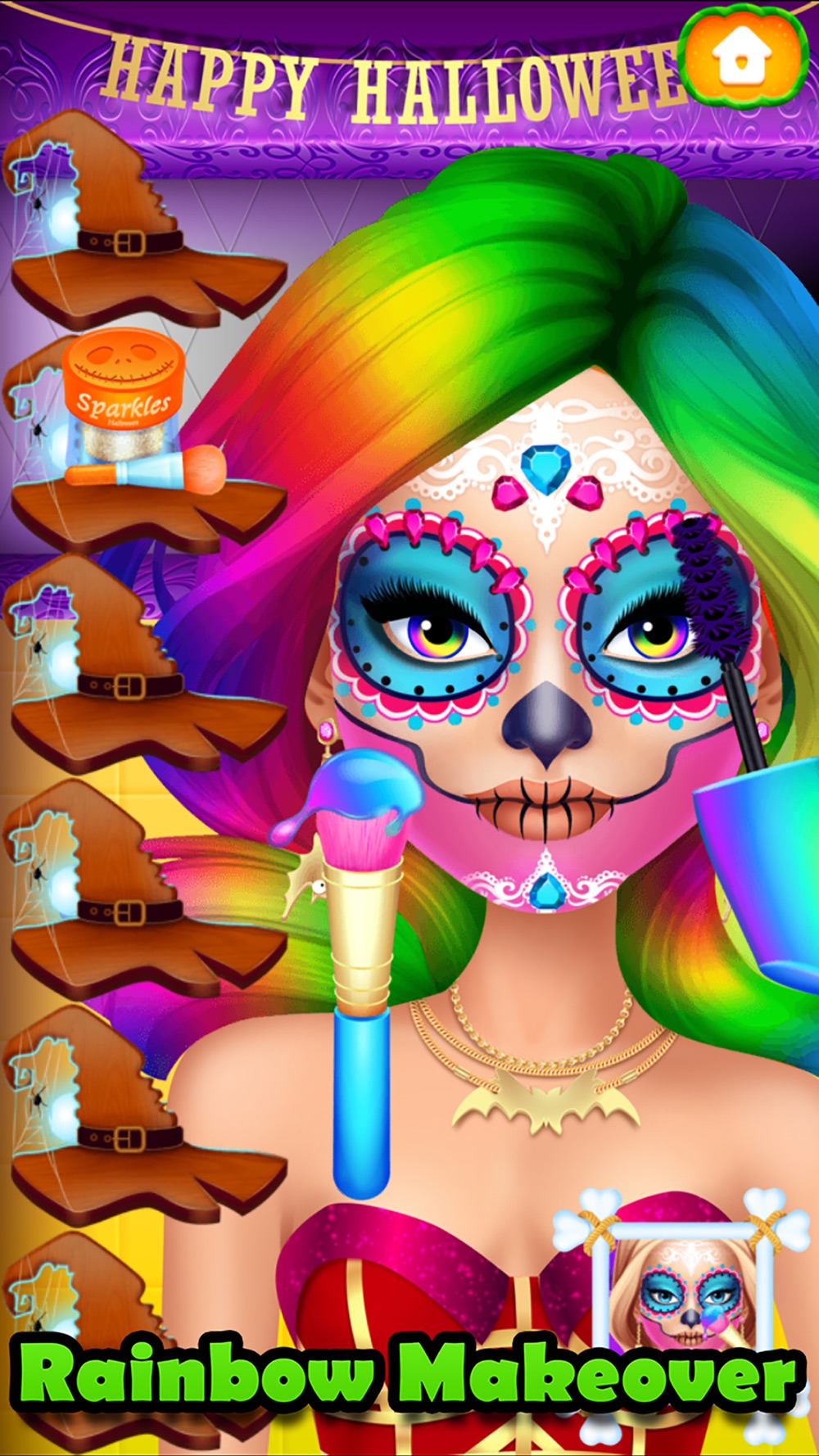Get ready for the best Halloween Makeover Simulator! Play fun spooky, rainbow and face-painting makeover rooms to look your best for Halloween!