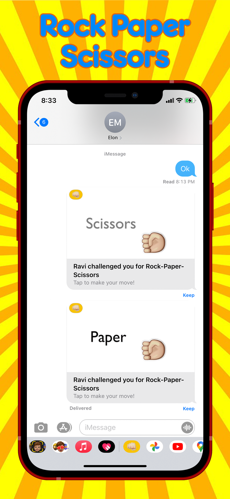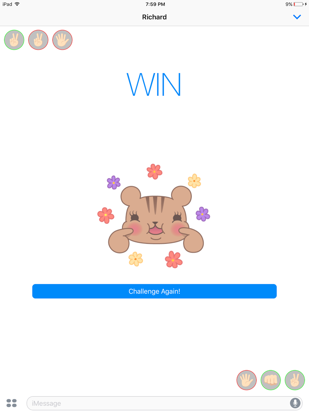 Rock Paper Scissor iMessage app, lets you to play with contacts in your iMessage.