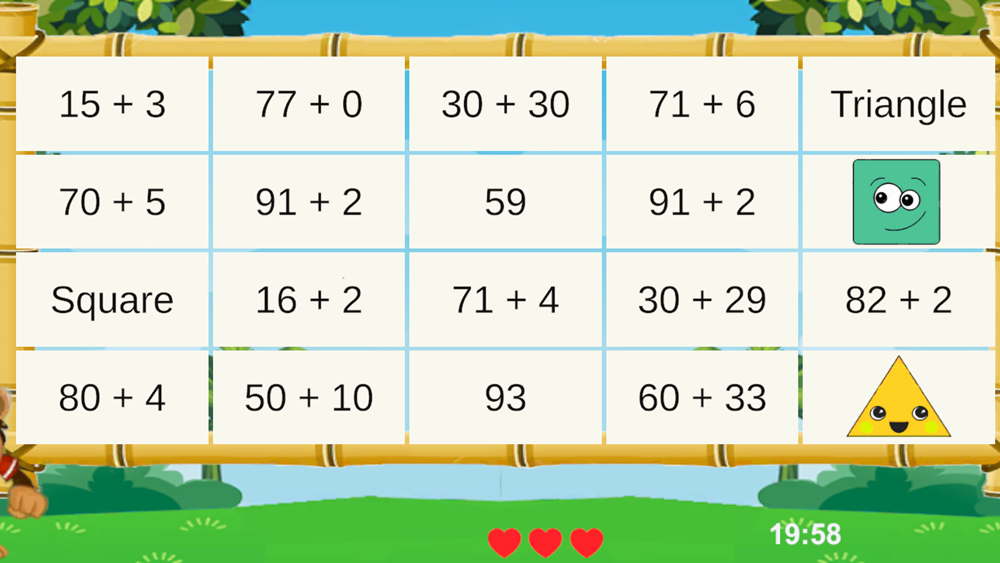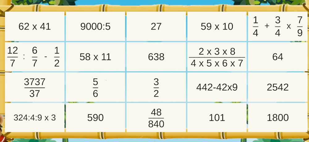 Lesson 3: Use your fingers. You help monkey choose its hook by choose the number or expression value in the table is equal to the numerical value or expression is written on the hook.