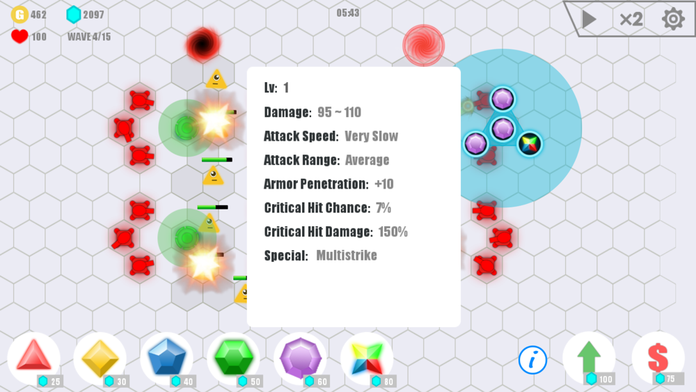 •Complex Strategy: Create the maze by build towers in specified locations. The further the monsters walk, the closer the victory is.