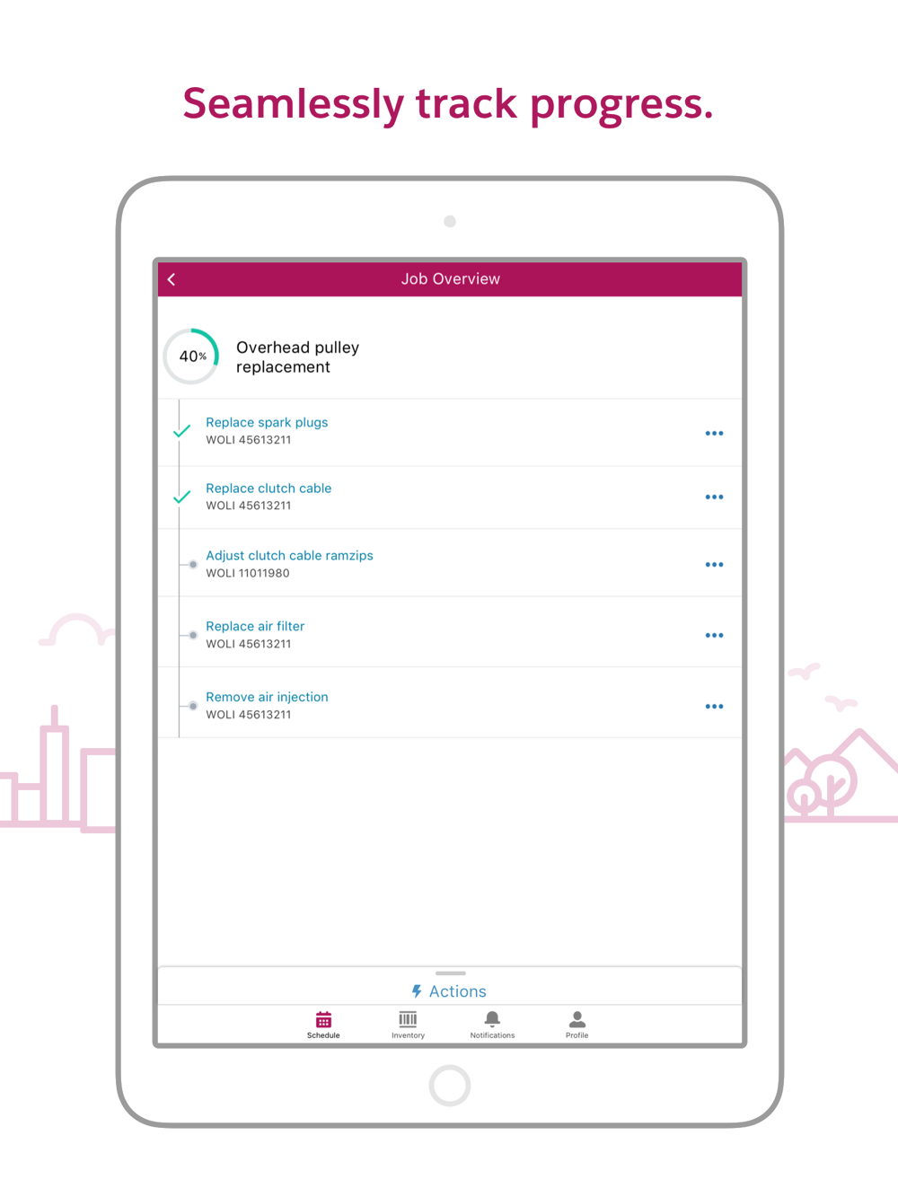 - Plan ahead by viewing the parts required to complete a job, and easily record the products consumed after completing a job.