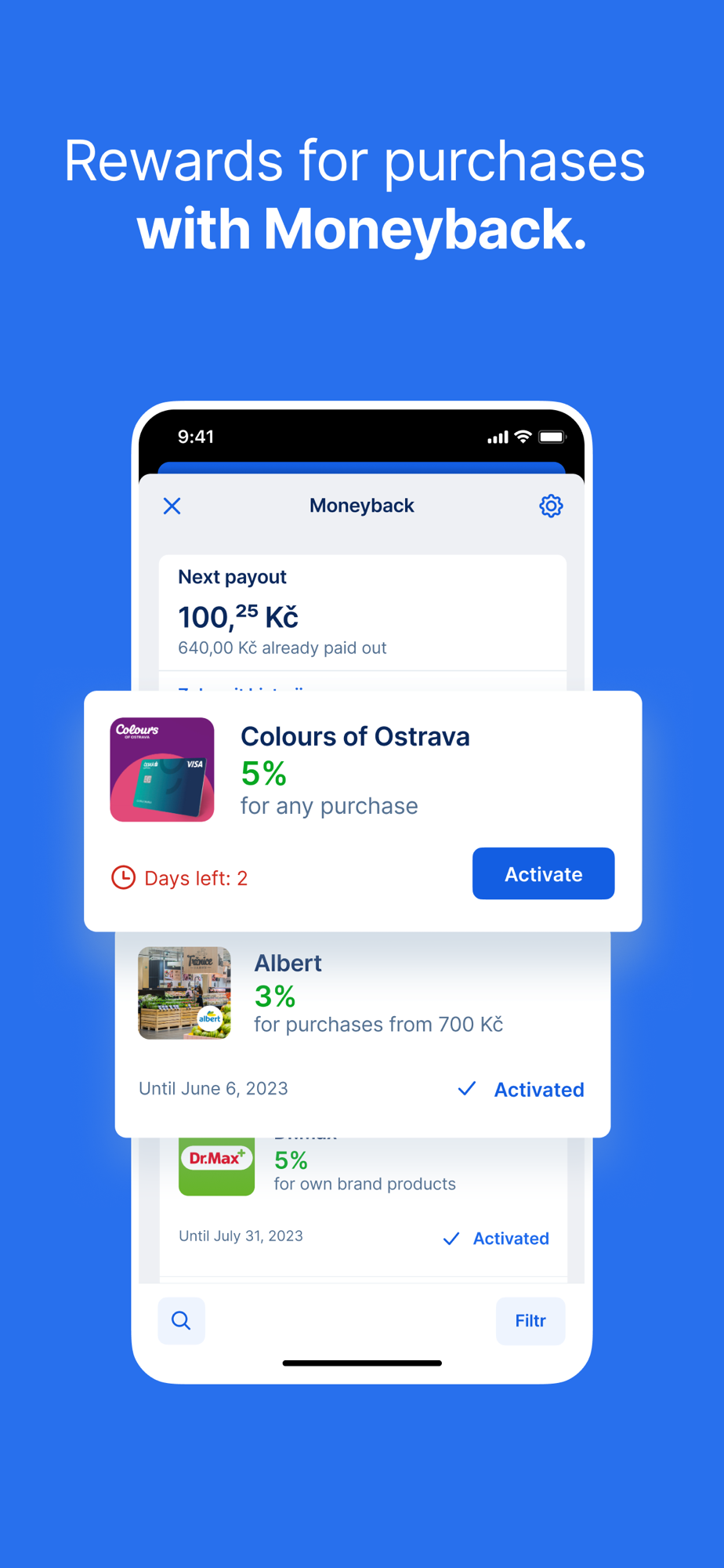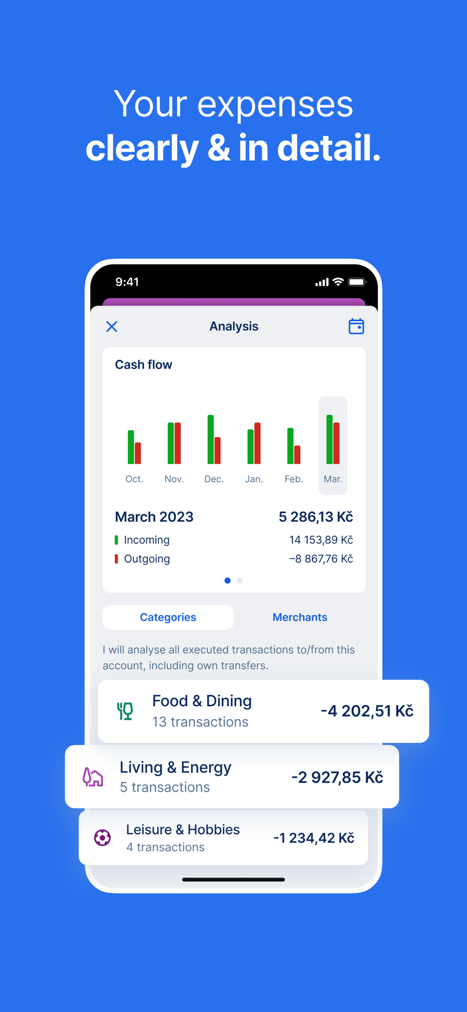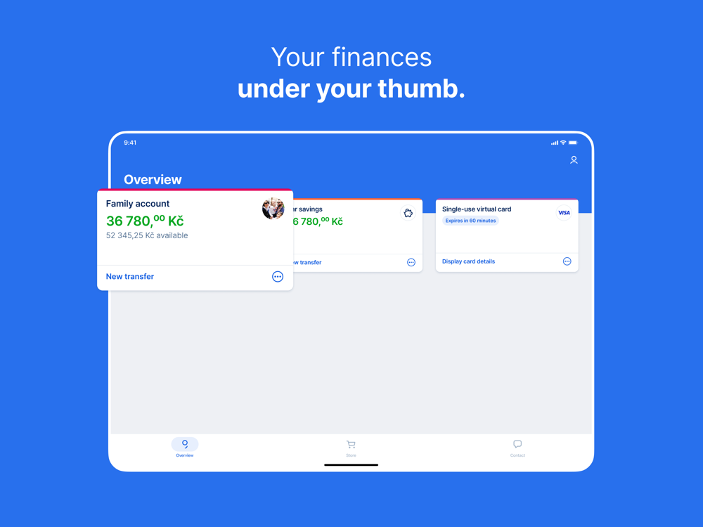 Want to have control over your money no matter where you are? With George, you can easily for free open an account online at Česká spořitelna, get an overview of your income and expenses, change your card limit, get into the world of investments, arrange travel insurance, or save money with the Moneyback discount program! Login to George and payment authorizations are quick with a Touch ID or Face ID, or you can choose another convenient method of security.