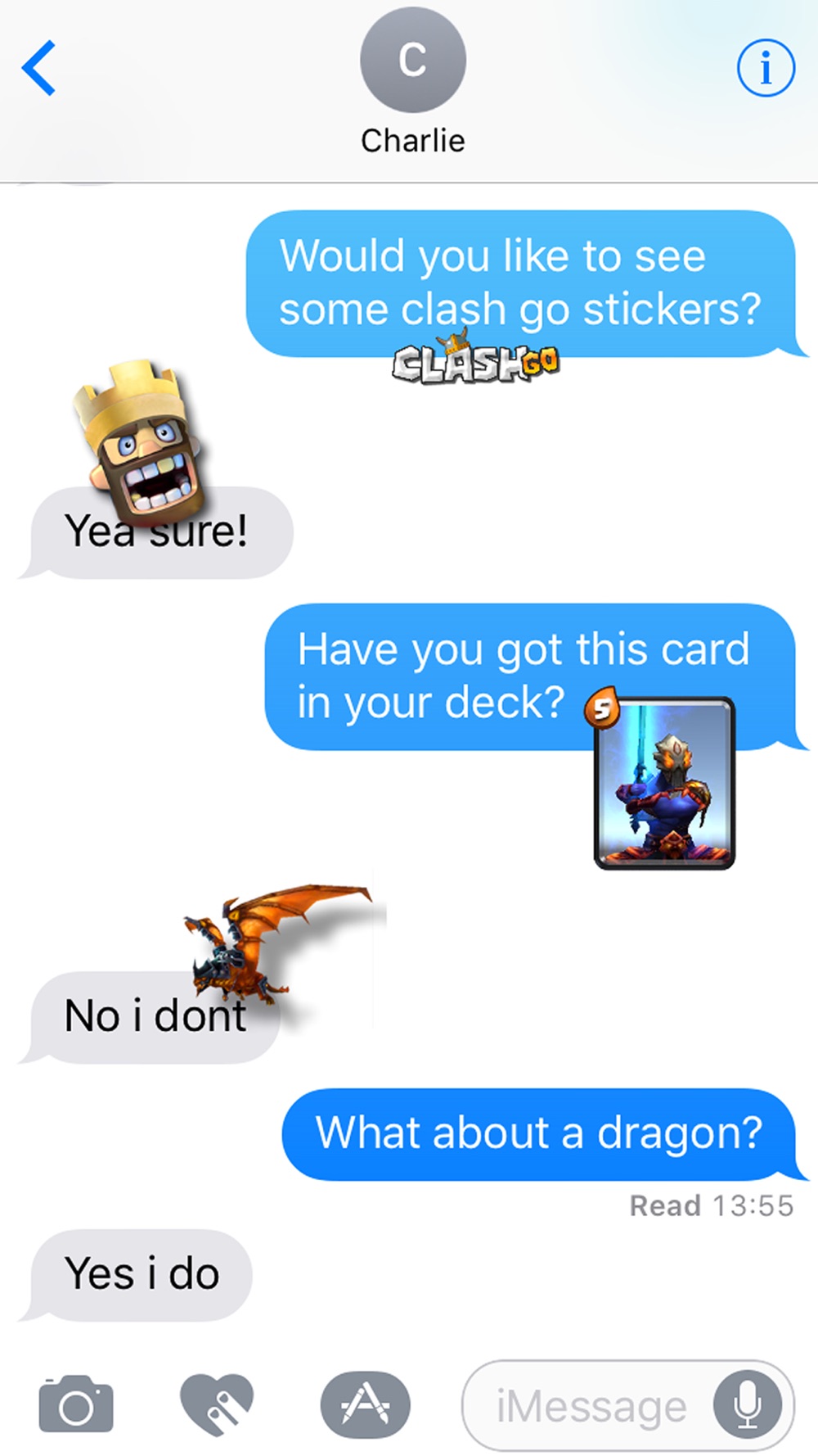 All your favourite characters for use in your messages. Send the Dragon to let your friends know you mean business, or a set of warriors to really warn them of your battle!