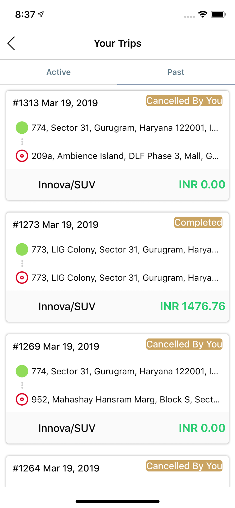 • To start the trip, the driver inputs the Destination location in the app (optional) and click on 'Start Trip' button.