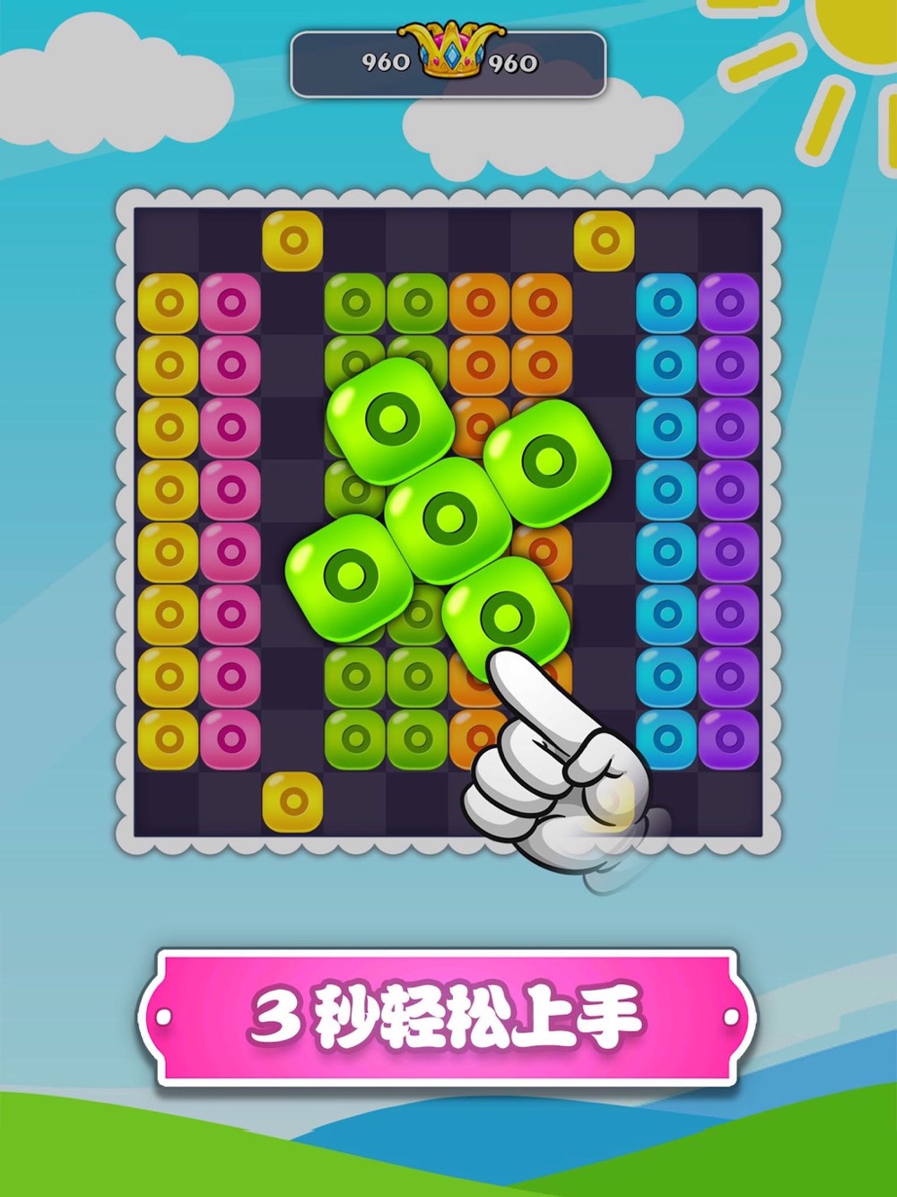 游戏结合了传统俄罗斯方块的玩法和现代拖动匹配的特点,游戏非常益智,完全停不下来的感觉。