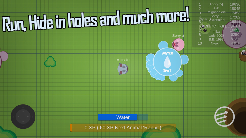In mob io world you will start to play as a little mouse. Eat berries to grow and earn points then transform to another animal, drink water to stay dehydration. The more you eat and drink the more you grow and become stronger, you get more and more XP, moving up the food chain right to the top. Gradually, you become a powerful animal, and can kill other ones.
