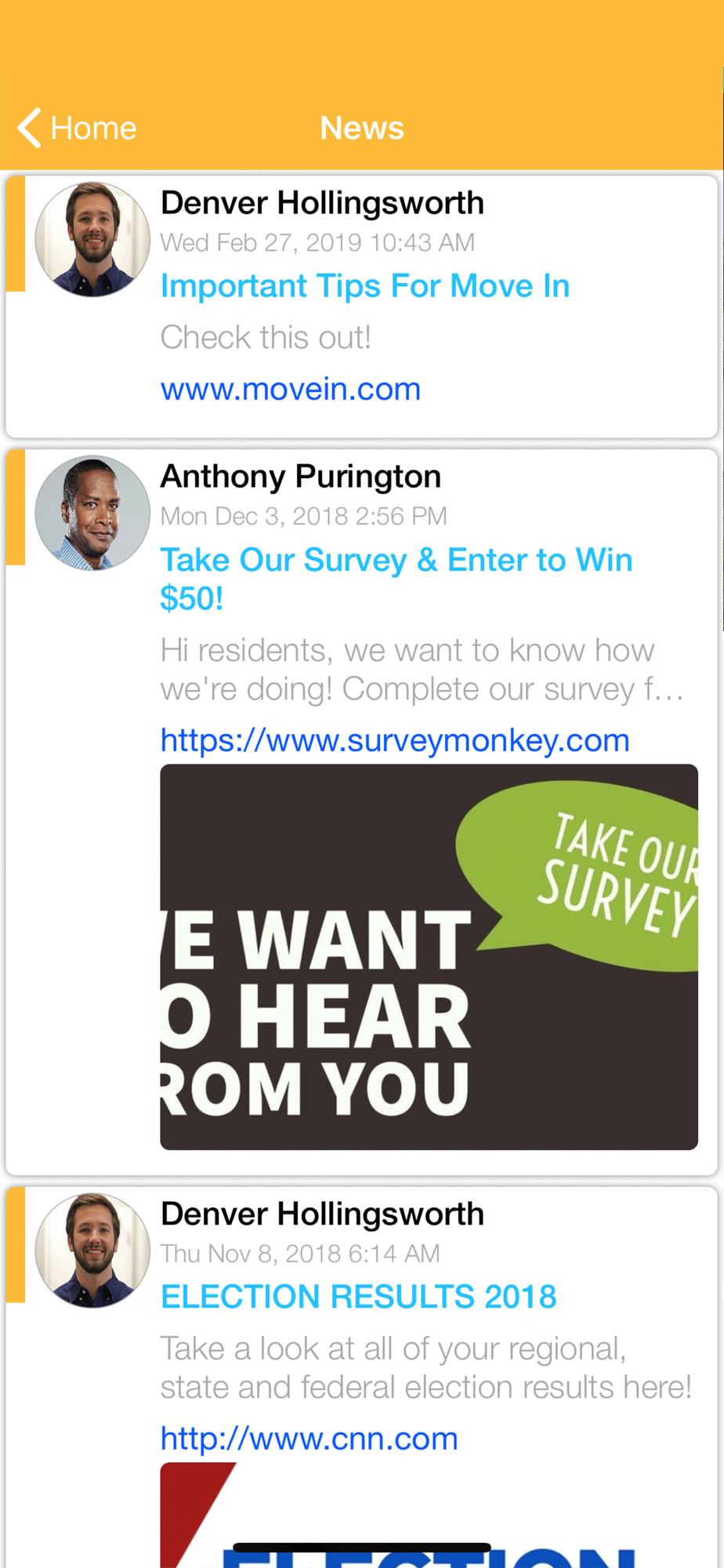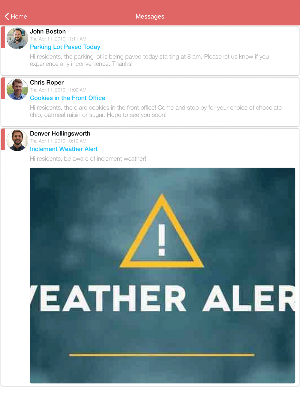 Get updates on upcoming events and urgent messages in real time. Whether you want to know when the next party is, or stay updated on important property information, the app makes it easy to stay in contact and customize the messages that you receive and how you receive them.