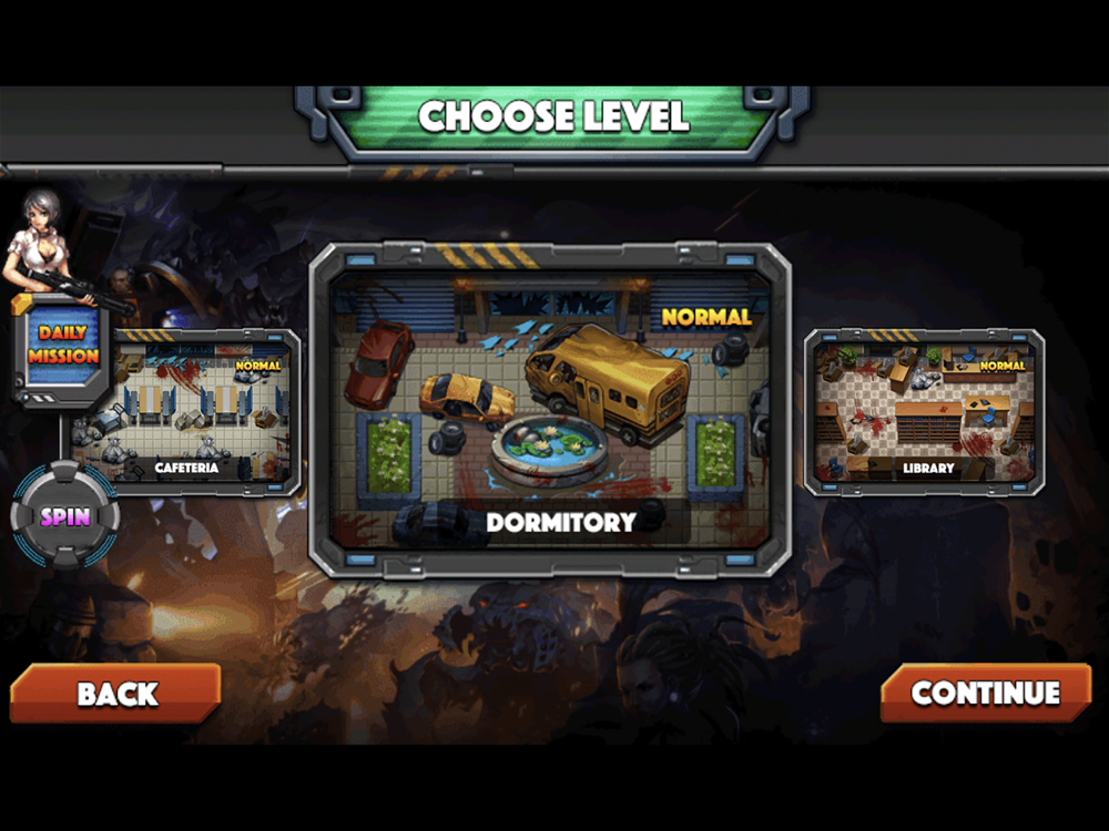* 6 battlefield: Front Door, Classroom, Cafeteria, Dormitory, Library, Parking Lot