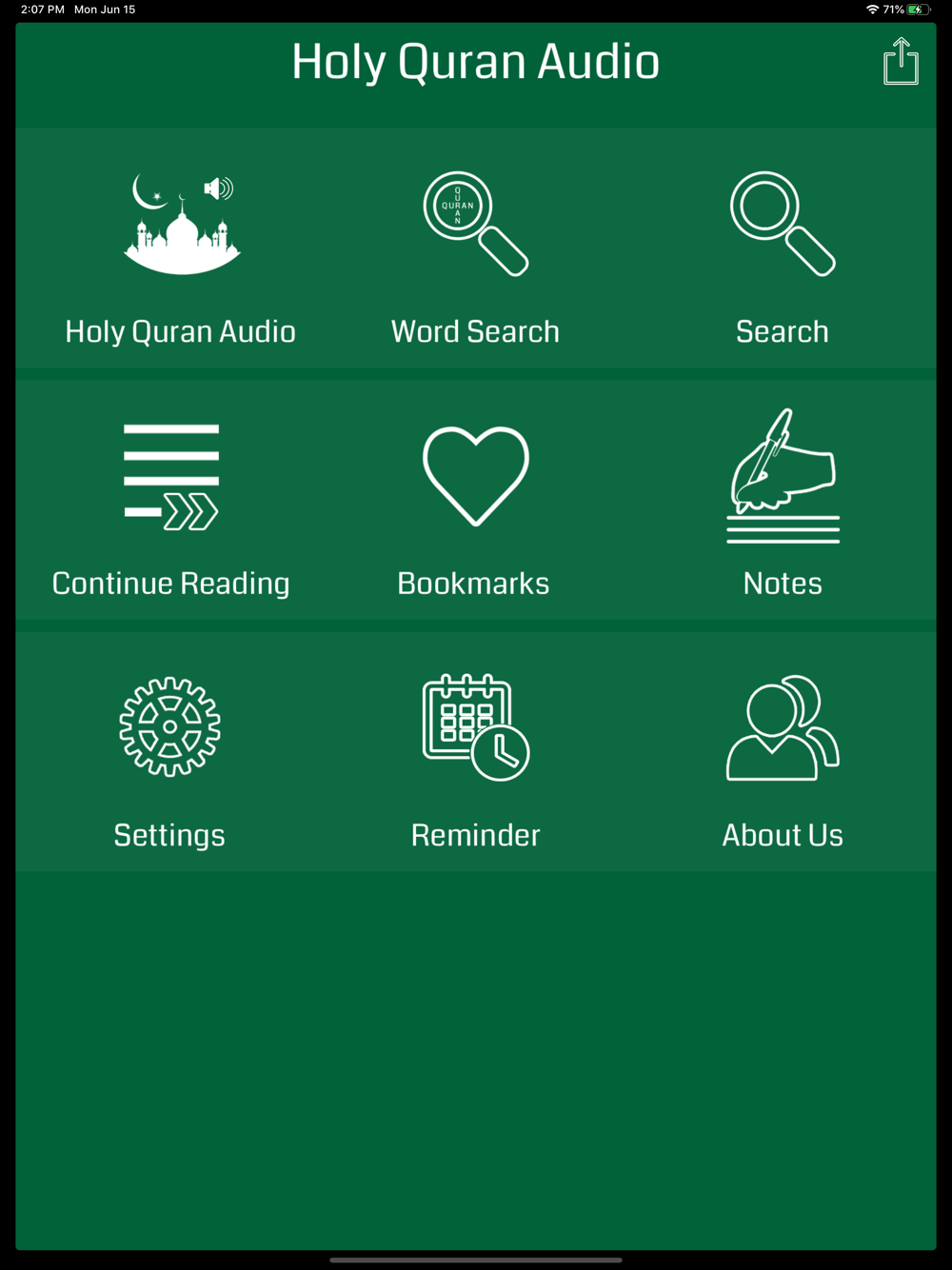 The following features have been implemented in our Holy Quran Audio Shakir: