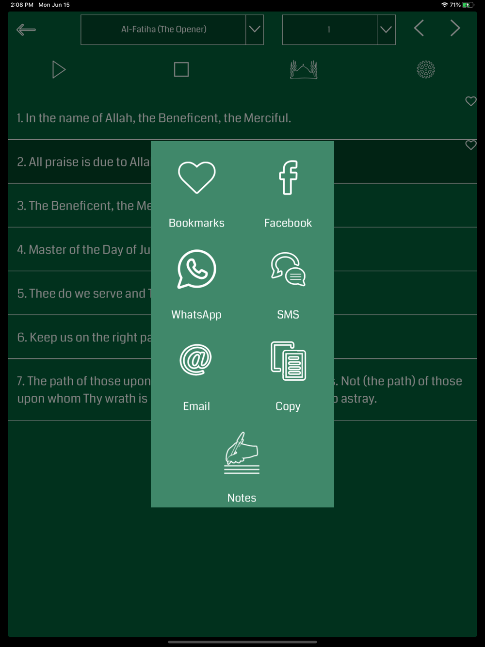 - Swipe the Verse to Bookmark and Share from Holy Quran Audio Shakir