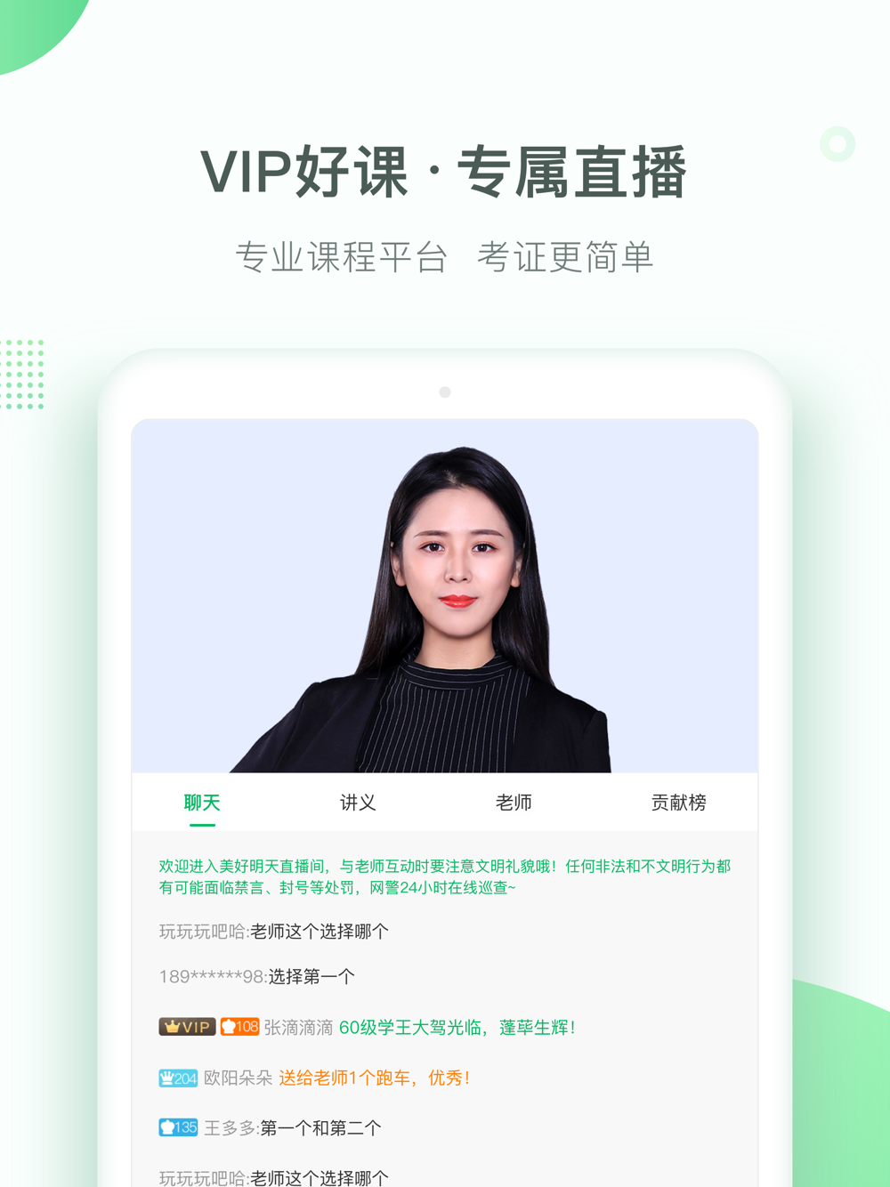 @U1334***:有很多老师特别负责,跟着老师的进度来,听话照做,考试肯定没问题的。不仅教老师很有实力讲的也细 特别喜欢讲课清晰 跟着听思路也很清晰。