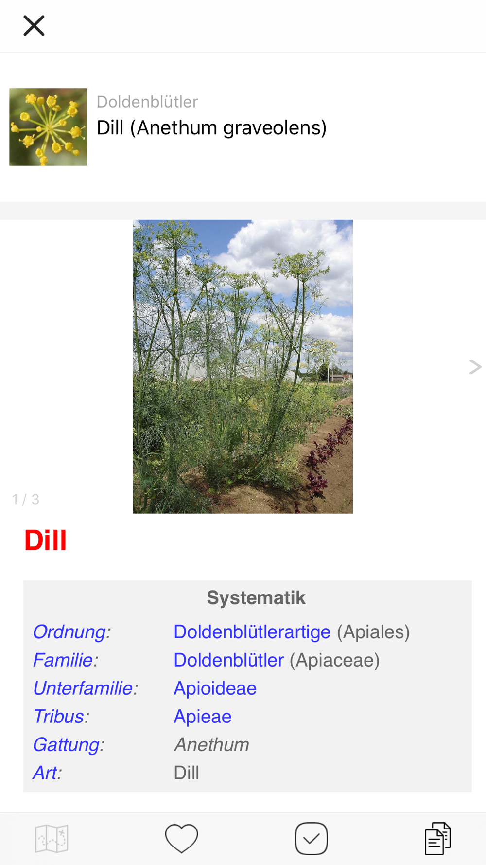 Die App funktioniert auch offline und erlaubt es jeder Pflanze eigene Beobachtungen in Wort, Bild und Video hinzuzufügen. Die Pflanzen sind nach ihrer botanischen Systematik gegliedert. Die Suche kann einerseits über die passenden Speisen oder andererseits nach den gebräuchlichsten deutschen oder lateinischen Namen erfolgen.