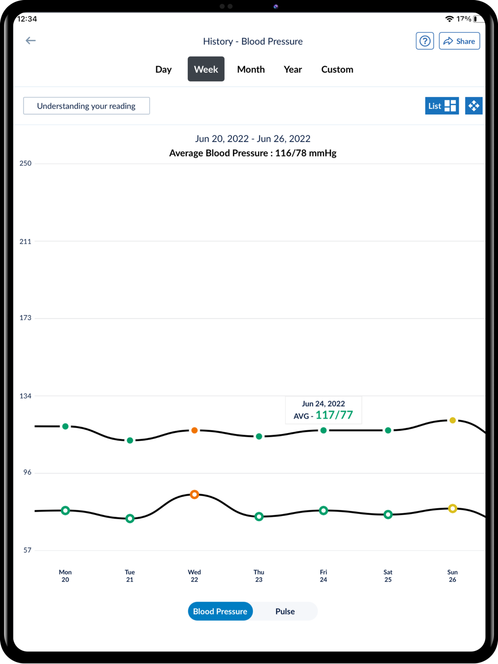 • Get a complete view of your blood pressure with systolic, diastolic and pulse readings