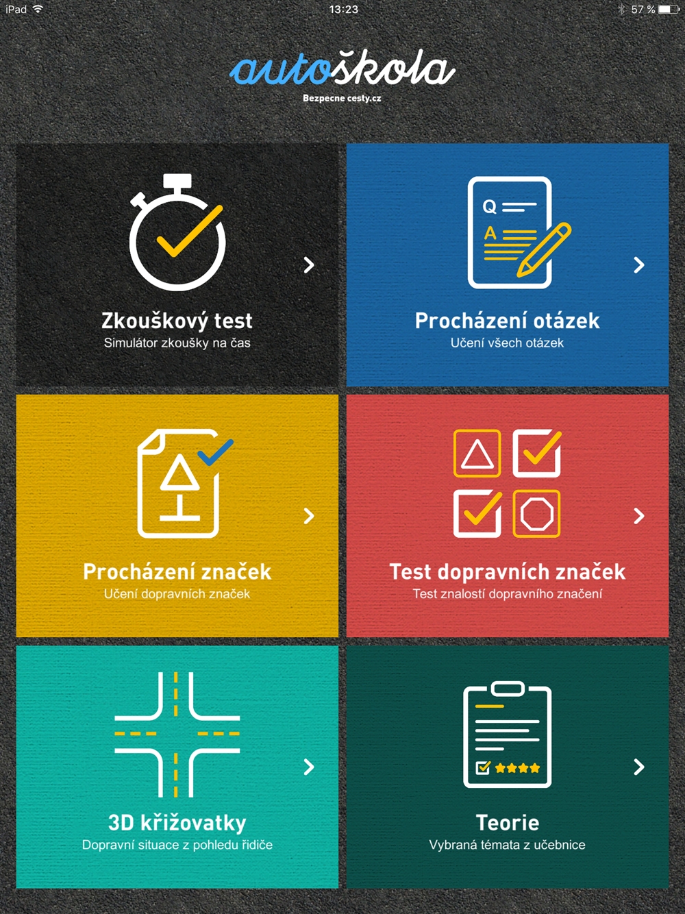 Aplikace obsahuje testy podle aktuálního věstníku Ministerstva dopravy (MDČR – etesty) pro řidičský průkaz skupiny B.