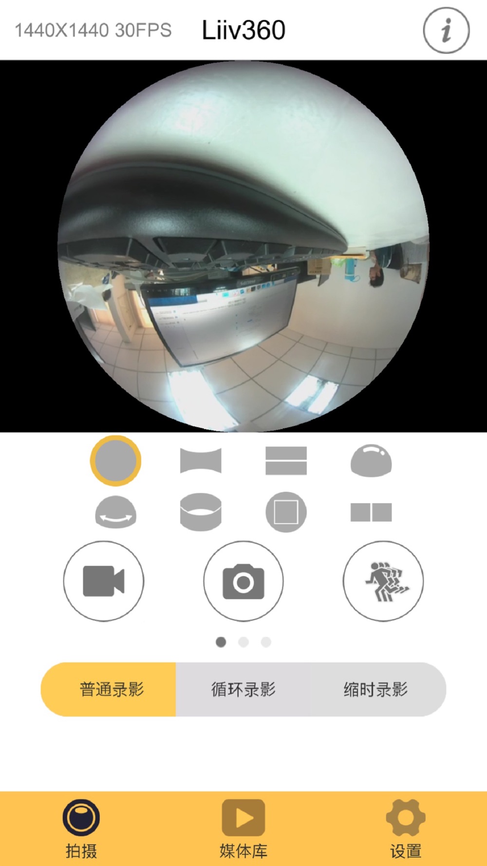 配合单目鱼眼全景相机使用的应用,通过这个应用你可以将你的全景相机画面以不同形式的展开方法进行展开,同时,你还可以用此应用进行不同模式的拍照和录像。