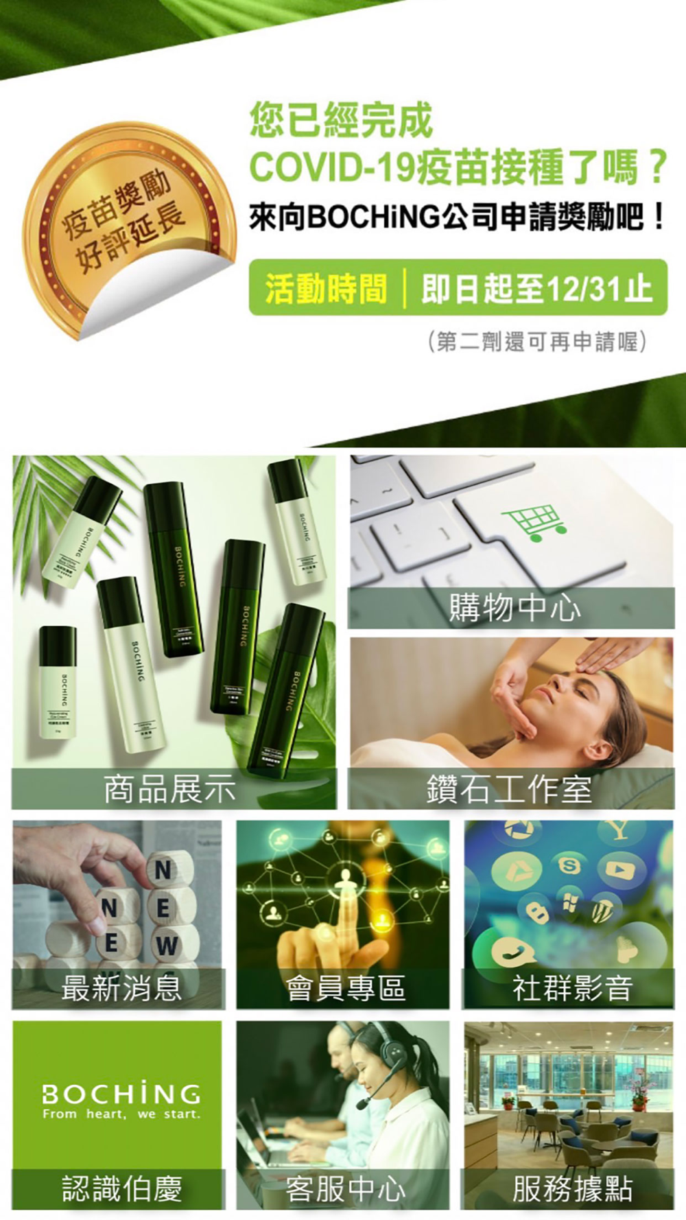 從真心關懷他人出發,透過其優質產品、服務及與眾不同的分享方式,並在無壓力、自主自在的成長環境,盡情參與、創造出無限的可能。請您就和伯慶一起從心開始,啟動自己的快樂人生!