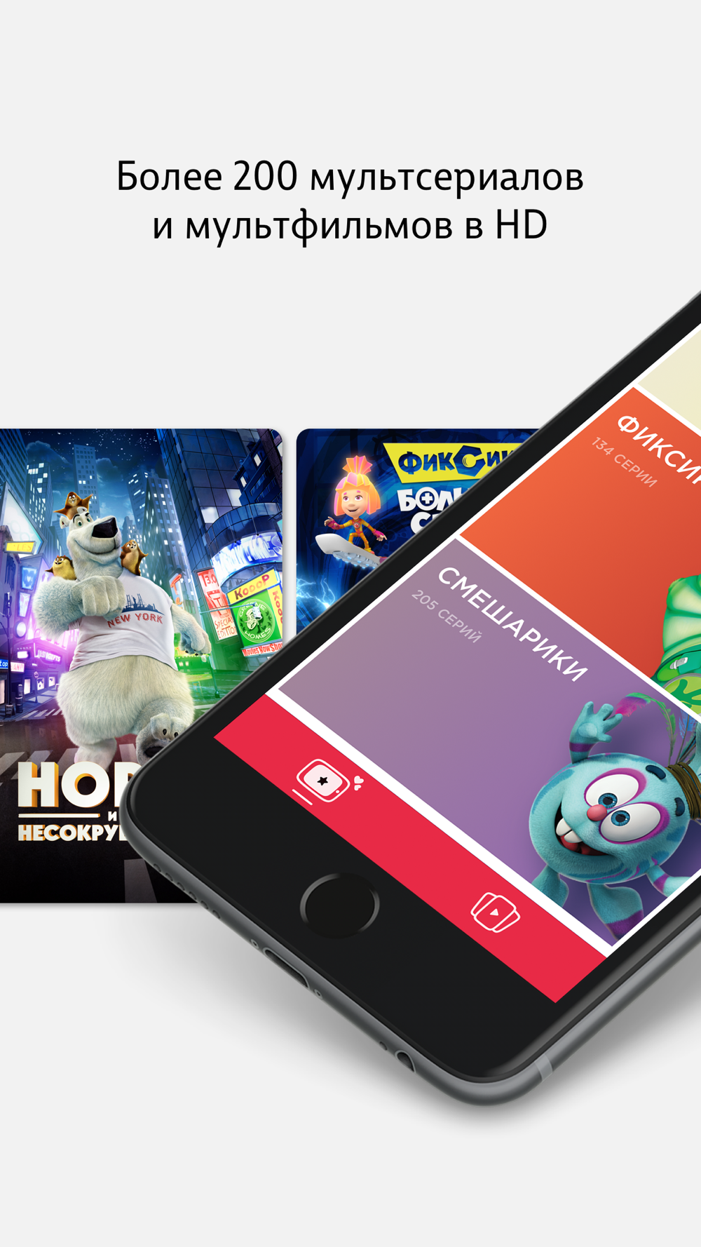 Смотрите в любом удобном месте такие популярные мультфильмы и мультсериалы, как: "Маша и Медведь", "Смешарики", "Фиксики", "Барбоскины", "Алеша Попович и Тугарин Змей" и многие другие онлайн на вашем iPhone или iPad в наилучшем качестве.