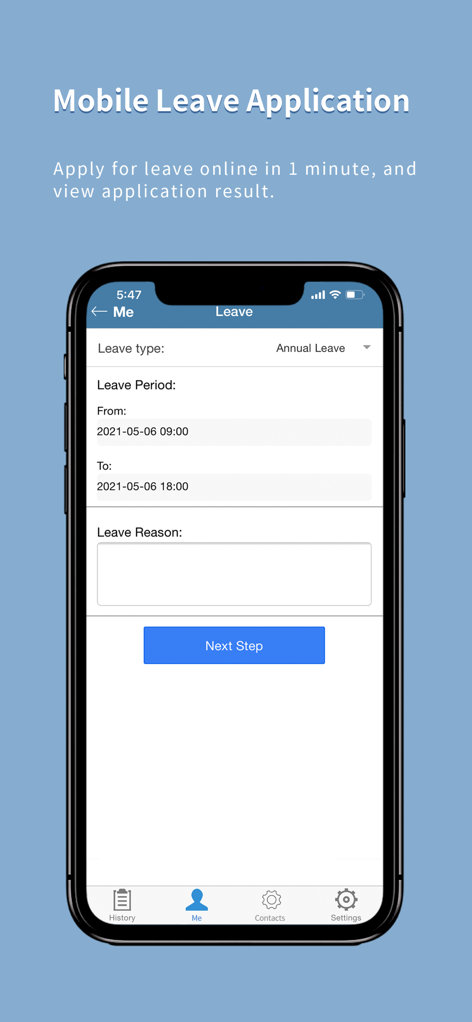 - 手機請假: 員工可以通過手機 APP 實現 1 分鐘在線請假 查看審批結果