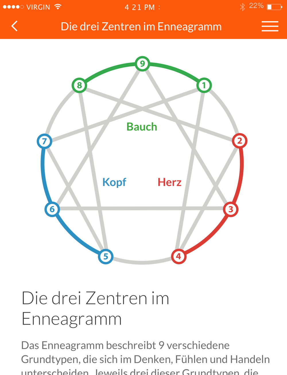 IN DER ENNEAGRAMM-APP FINDEN SIE FOLGENDE BEREICHE: