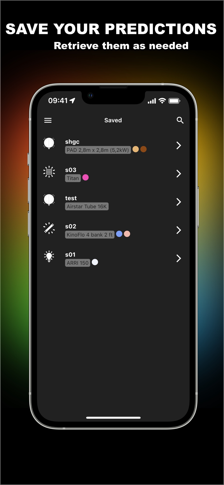 Predilux lets you predict the exposure (key light) measured by a light meter, by choosing a light source and a distance. Or inversely measure the distance to the light source by specifying the exposure.
