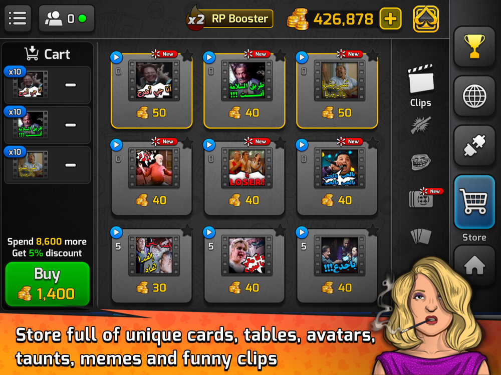 - Buy and collect a variety of creative card decks and backgrounds from the in-game store