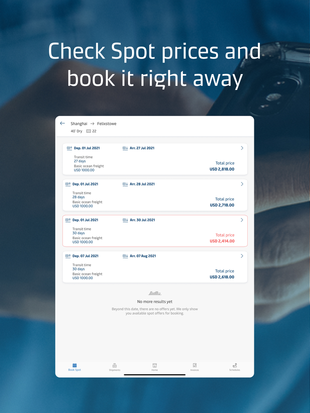 Real-time shipment information. Favorite a B/L, container, schedule or price search. Receive notifications.