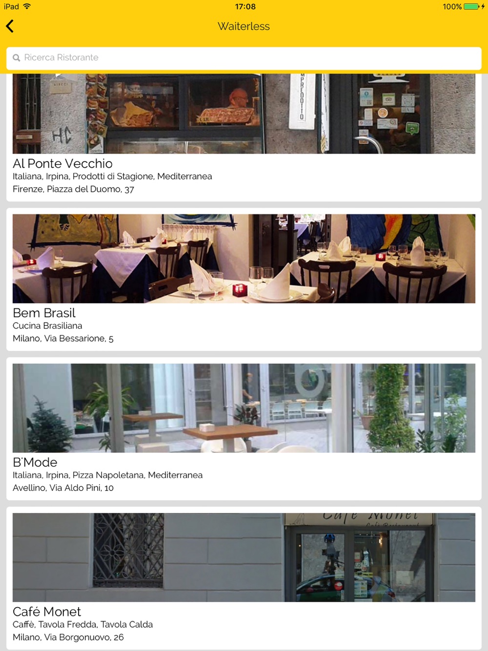 Waiterless è la migliore soluzione per cercare e scoprire ottimi locali in cui mangiare. È una app facile da usare e che ti permette di scoprire i migliori ristoranti nella tua città. Cerca tra i menu aggiornati, foto e scegli dove mangiare.