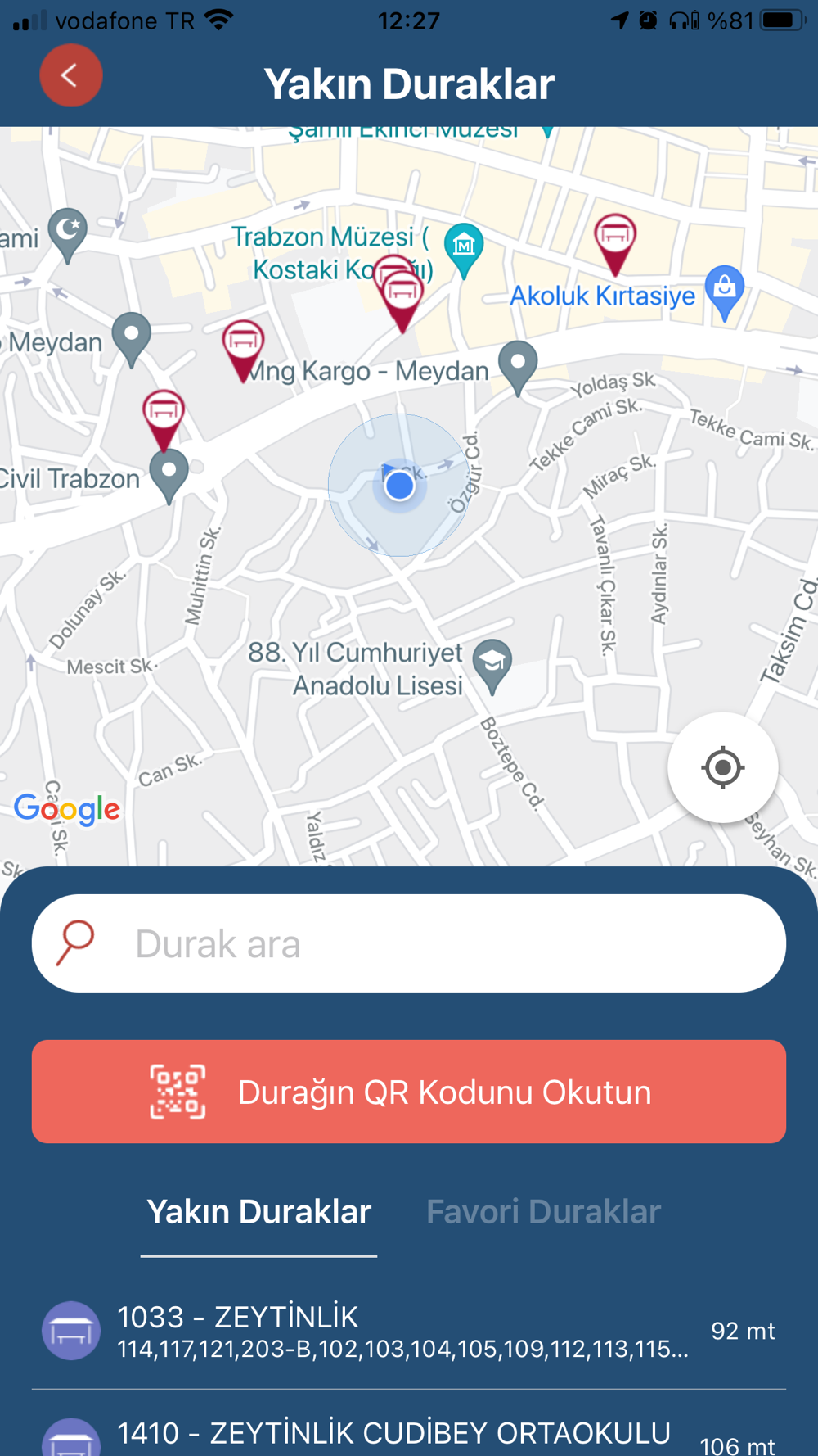 -Durak seçerek, QR kod okutarak veya durak numarası girerek durağa yaklaşmakta olan araçlar görüntülenebilir.