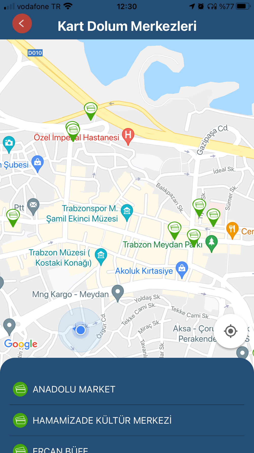 -Kart dolum merkezleri görüntülenebilir.