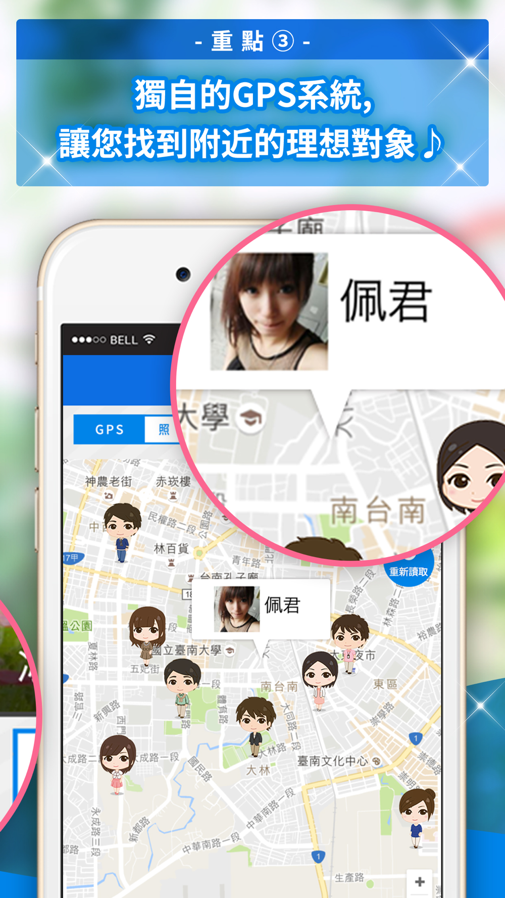 利用GPS功能尋找附近的人・找到即刻開始聊!