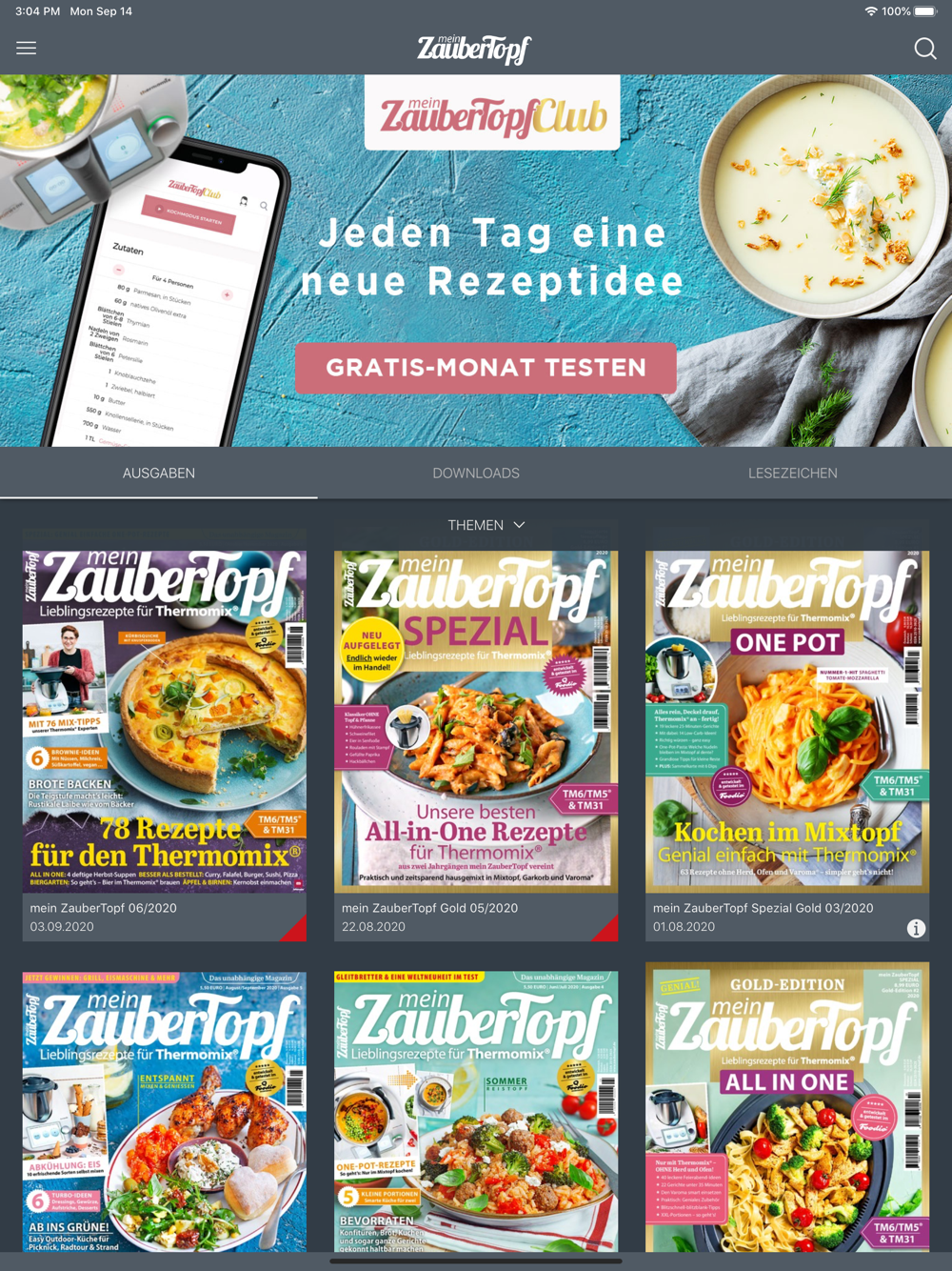 Einfach auf dem iPhone oder dem iPad die "mein ZauberTopf"-App installieren und unterwegs in deinen Lieblingsausgaben stöbern. Zoome in die Artikel hinein und blätter dich durch die Magazine im Quer- oder Hochformat.