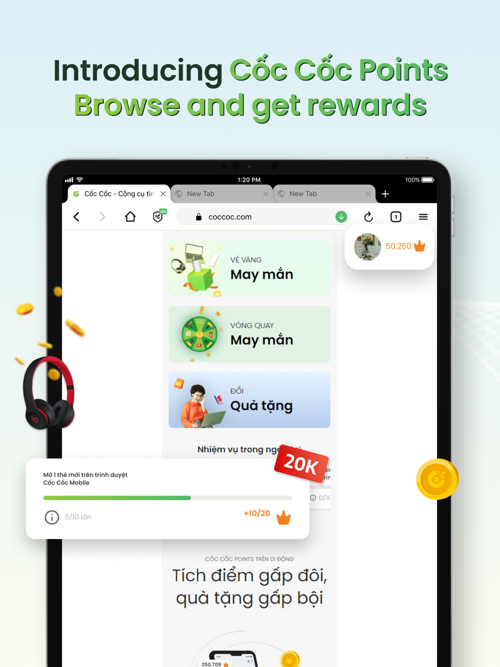 - Earn Points - Exchange Gifts: Earn Cốc Cốc Points for your daily browsing activities. Redeem points to exchange gifts or join interesting games with valuable rewards.