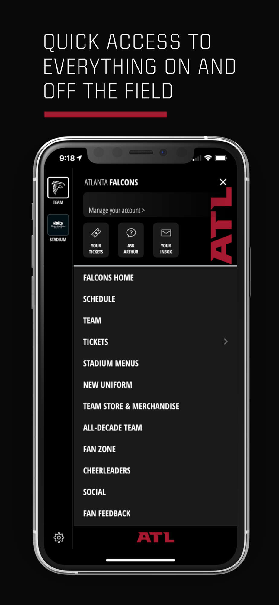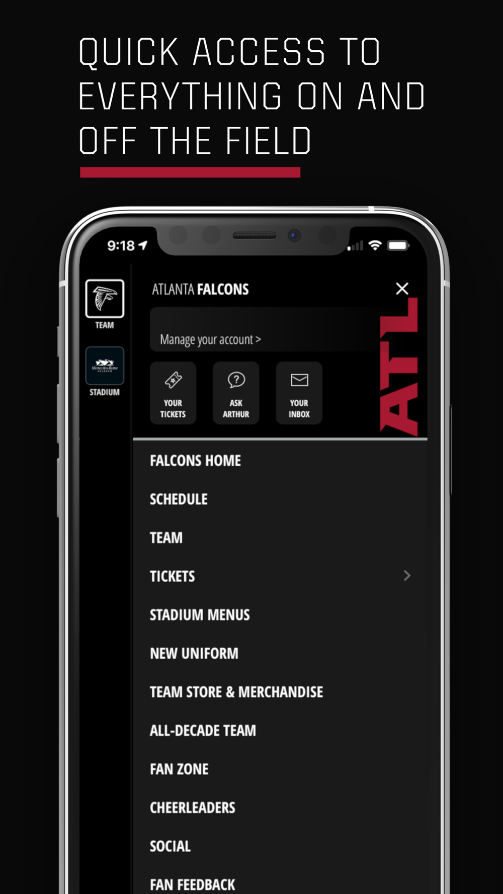 So whether you're watching the game with your fellow Dirty Birds at Mercedes-Benz Stadium, or live-streaming the game on your device, the upgraded Falcons app has all you need right at your fingertips.
